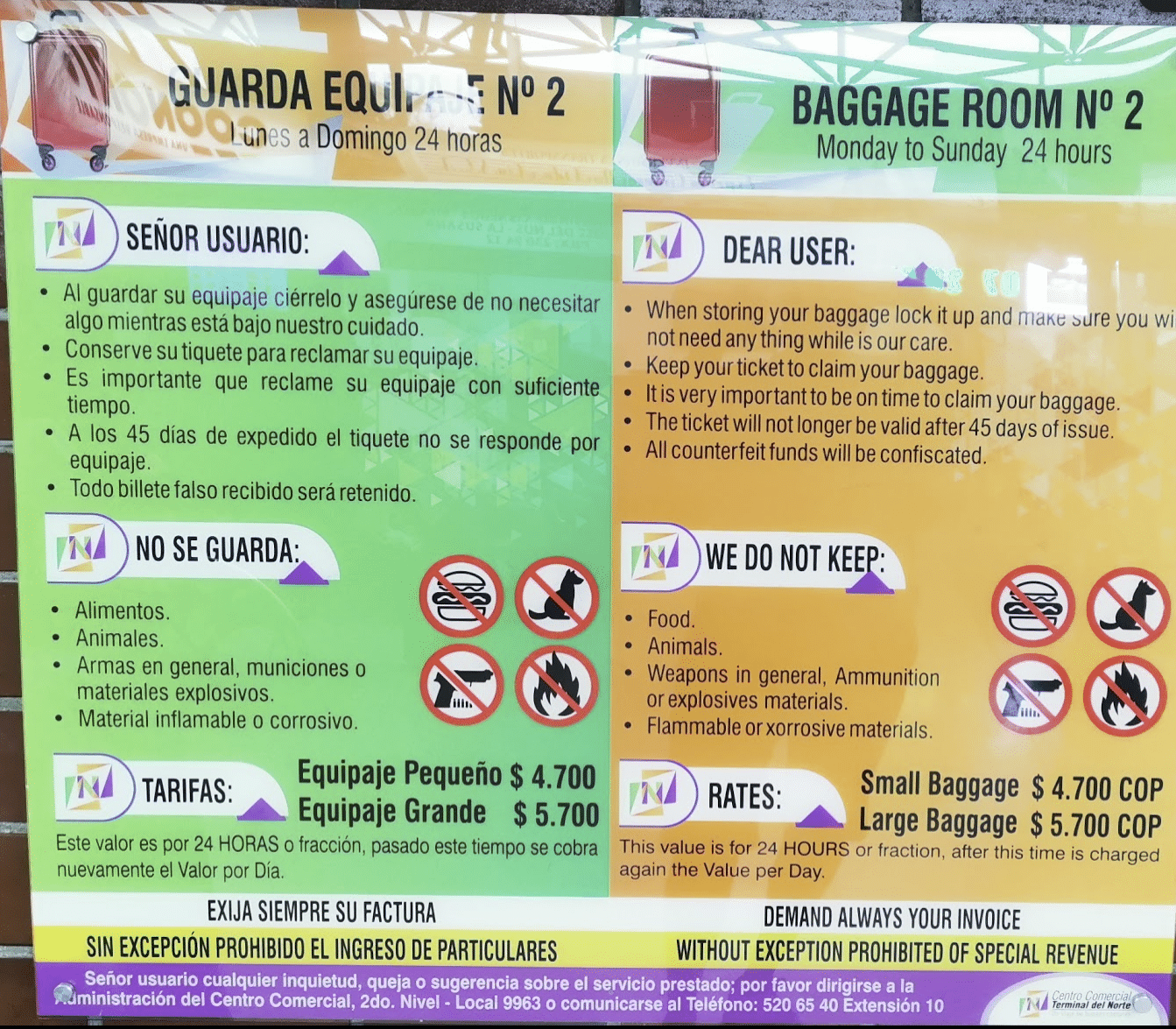 Existem 2 terminais em Medellín: Terminal del Sur e Terminal del Norte. Dependendo do seu destino, você tem que ir para o Norte ou para o Sul. Ambos os terminais oferecem um serviço de depósito a uma taxa muito acessível.