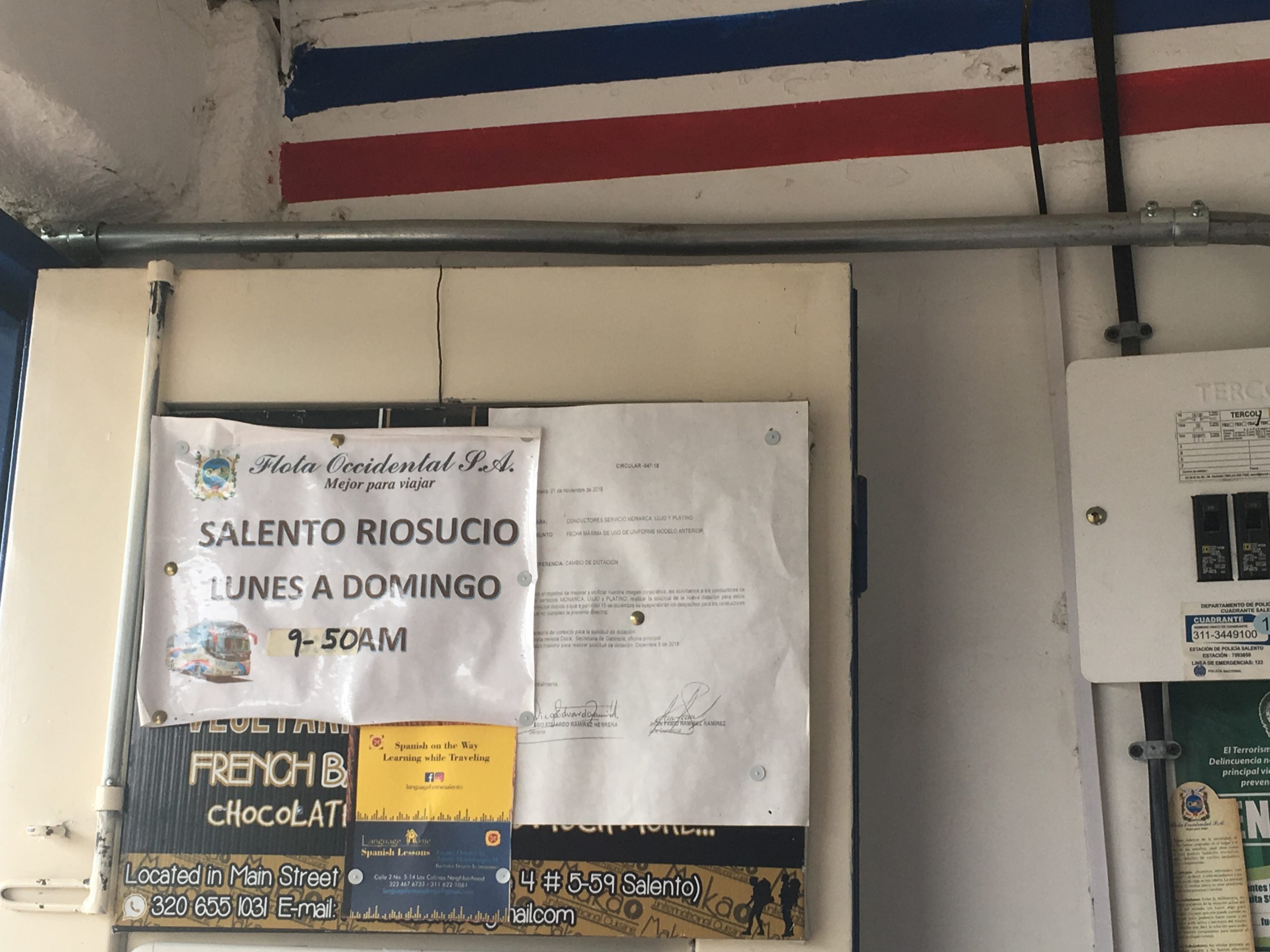 O autocarro Salento => Riosucio sai todos os dias às 9.50 da manhã do terminal de autocarros