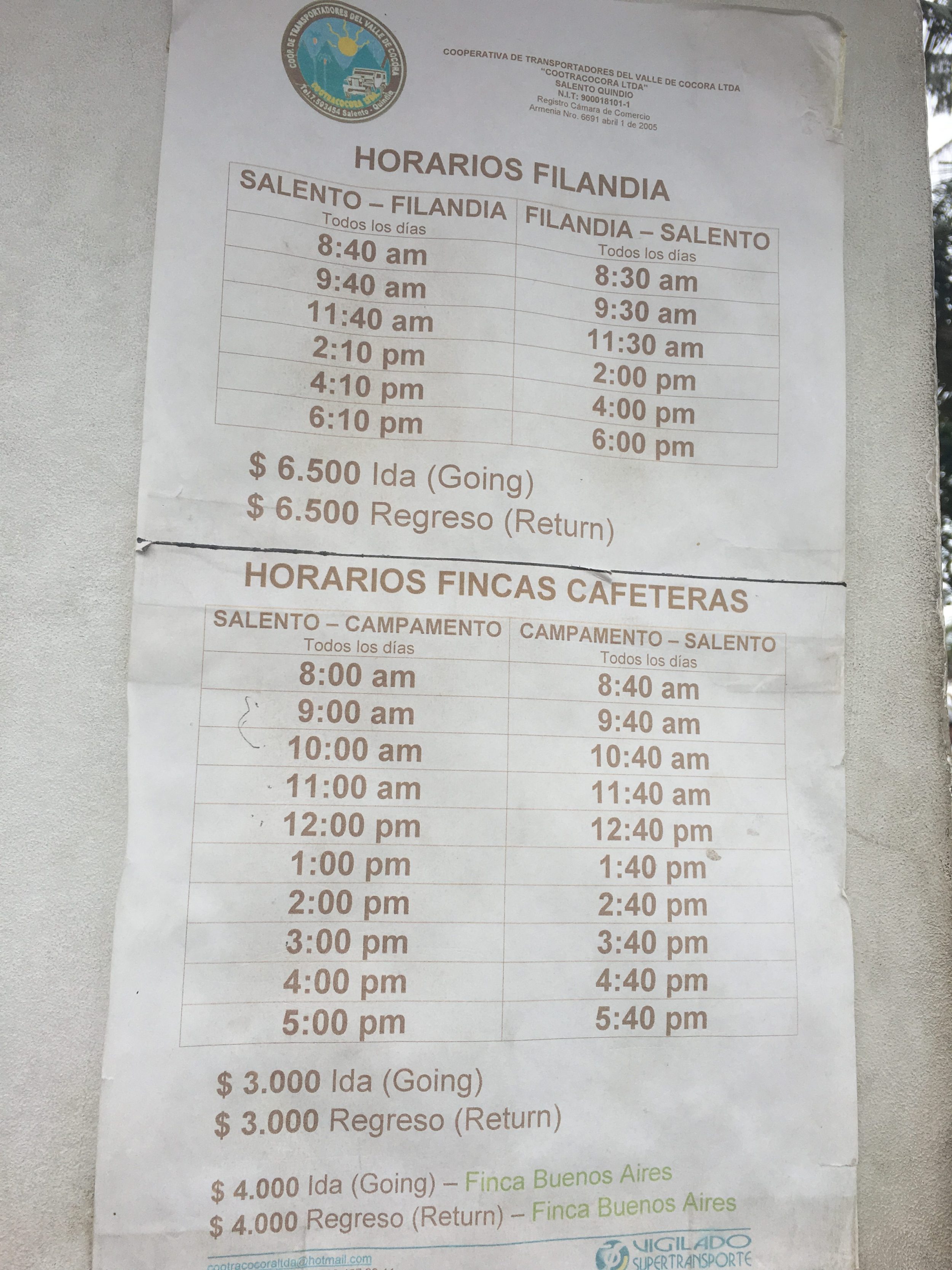 Horários & Tarifas de Ônibus (2020) Aeroporto Pereira – Salento. Transporte Salento – Vale de Cocora / Boquia / Arménia