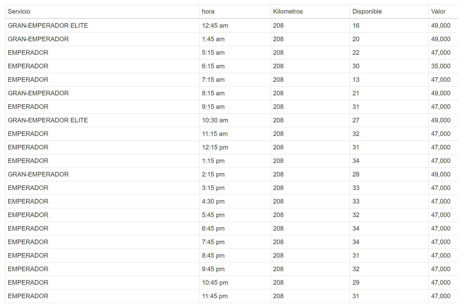 Os horários e tarifas são mostrados nas imagens abaixo (entre 3000COP e 4000COP de uma maneira), clique com o botão direito do mouse para salvar em seu telefone ou computador. A viagem leva entre 20 e 30 minutos.