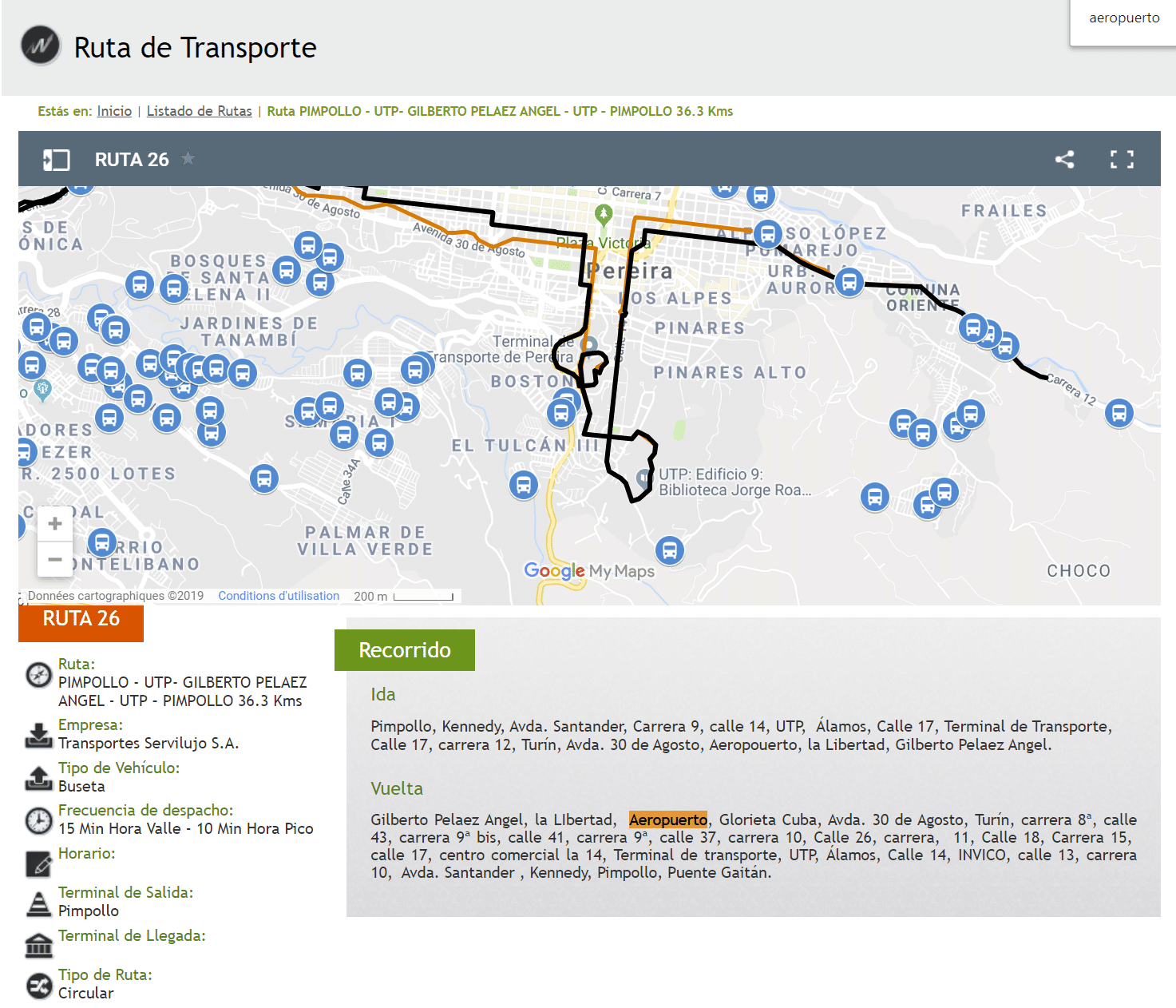 Passo 1: Aeroporto Pereira => Terminal de Transportes Pereira