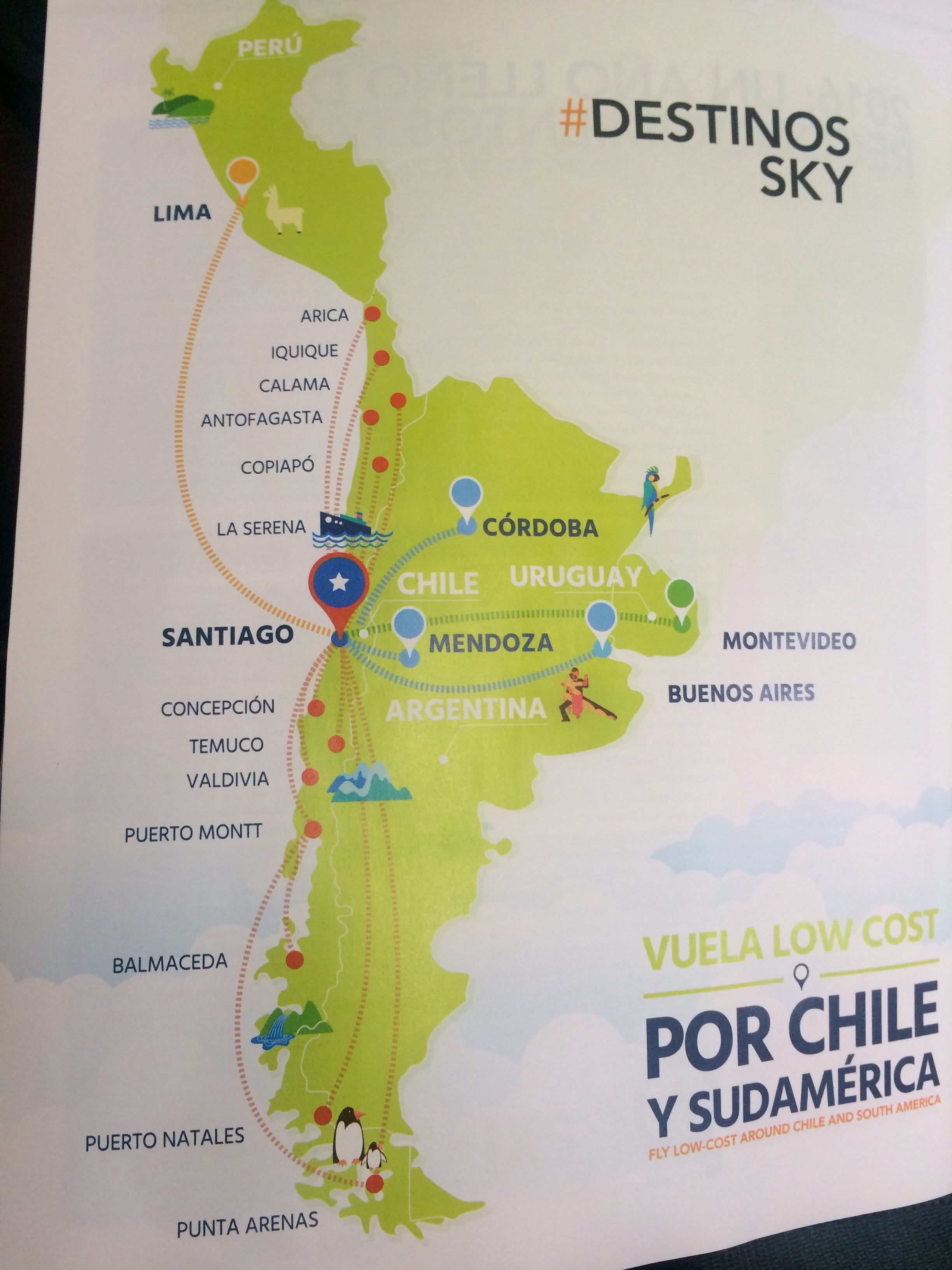 Mapa de rotas das companhias aéreas na América do Sul: LATAM, Skyairlines, Aerolinas