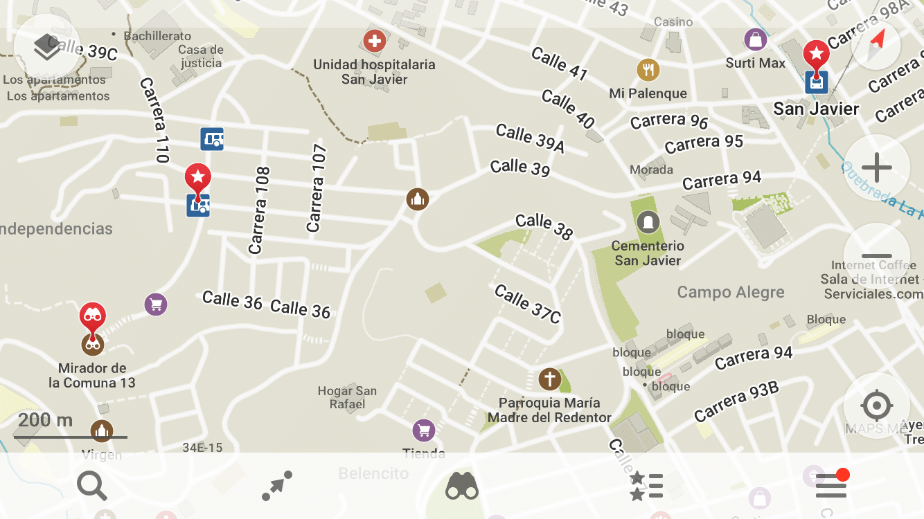 - Apanhe o autocarro 2251 (1200COP, pagamento em dinheiro) e pare no ícone do autocarro neste mapa (no cruzamento da Carrera 109 com a Calle 38A)
