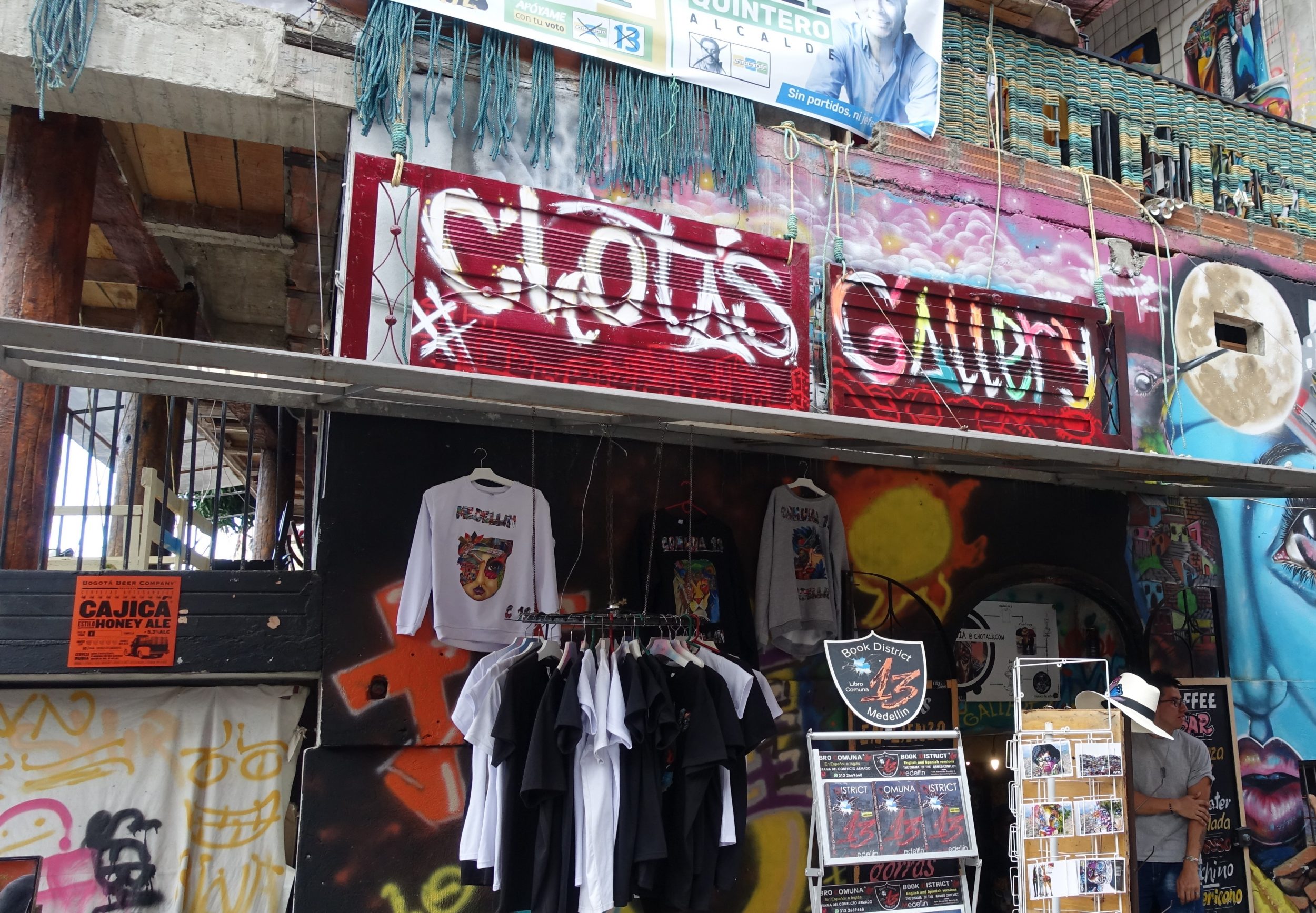 Experimente a limonada de café dele. É muito boa. E empanadas, também. Ao lado do cofre no térreo, há uma foto dele com Bill Clinton que veio visitar o local, e um caderno cheio de fotos antigas da Comuna 13.