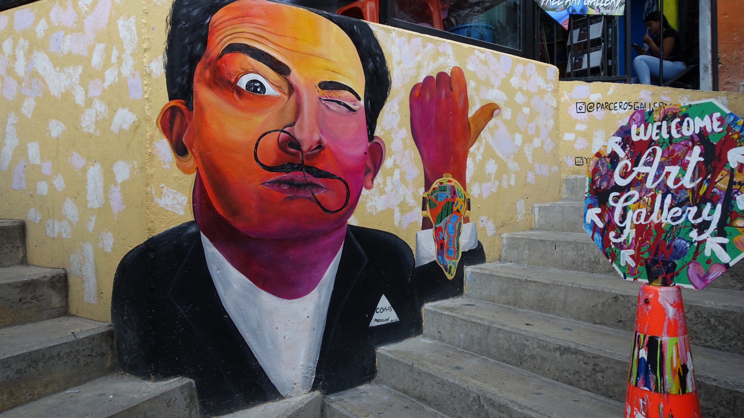 No caminho há alguns pequenos grupos de dançarinos e rappers. É domingo, por isso o ambiente é ainda mais festivo do que durante a semana. Há uma energia incrivelmente positiva e está nos fazendo muito bem, especialmente desde que tivemos nosso telefone roubado ontem. Muito chateados e um pouco traumatizados, precisamos acreditar novamente no lado positivo da vida e a Comuna 13 nos ajudou muito neste aspecto.