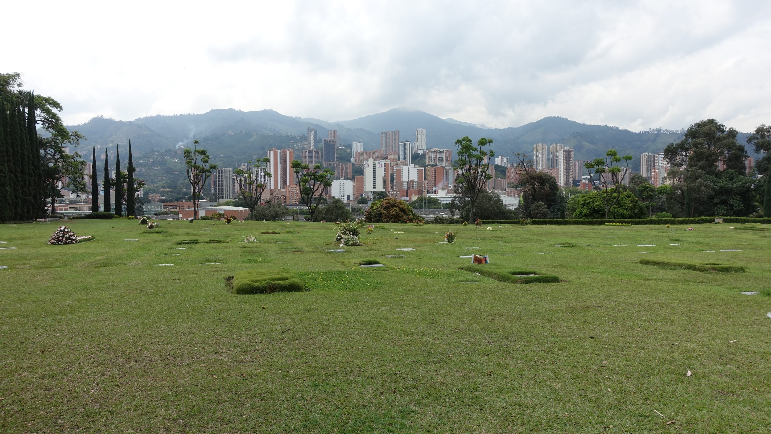 No cemitério, os túmulos estão no chão. Atrás de cada vida, apenas uma pequena placa permanece no gramado bem cortado e verde.