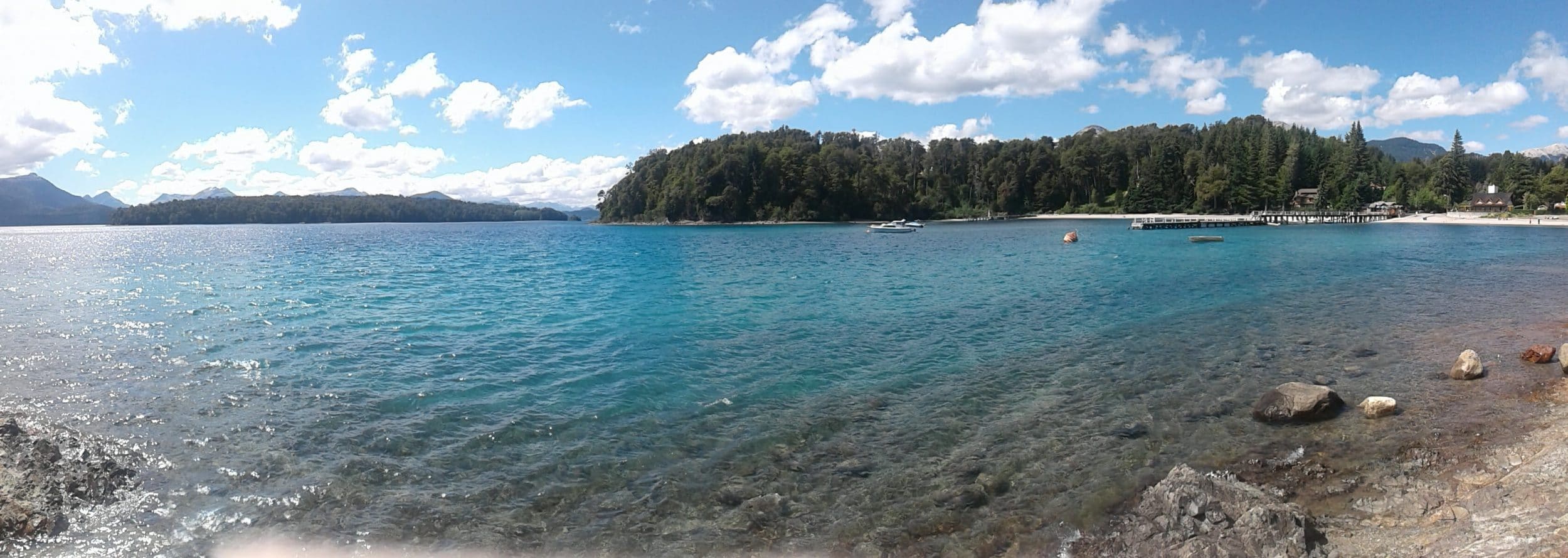 Ao colocar o Parque Nacional Los Arrayanes no GPS, o GPS nos leva à Bahia Brava Bay, um esplêndido lugar onde não nos cansamos dos tons de azul, dos molhes e da água transparente do Lago Nahuel Huapi.