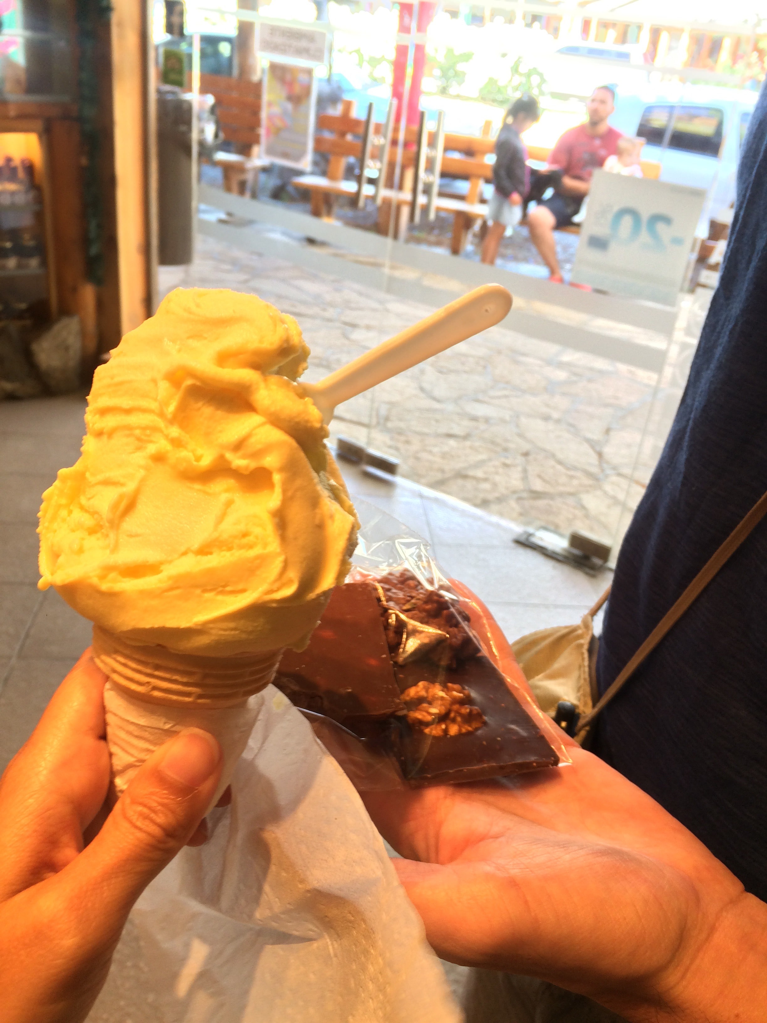 Nós optamos por gelado caseiro e chocolate caseiro. É barato (100$AR para tudo) e é super bom. Primeiro de tudo, o cheiro quando se entra na loja é irresistível.