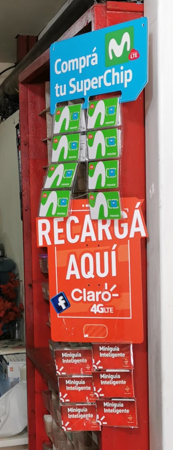 Como na maioria dos países da América do Sul, é muito fácil comprar um cartão SIM e crédito em lojas de telefones ou mesmo em mercearias. Procure por estes monitores.