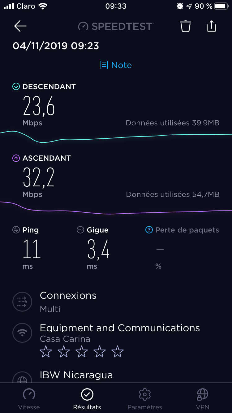 Se há muitas tabelas aqui para trabalhar, a conexão à Internet é decepcionante (1.72Mbps para baixo, 1.57Mbps para cima).