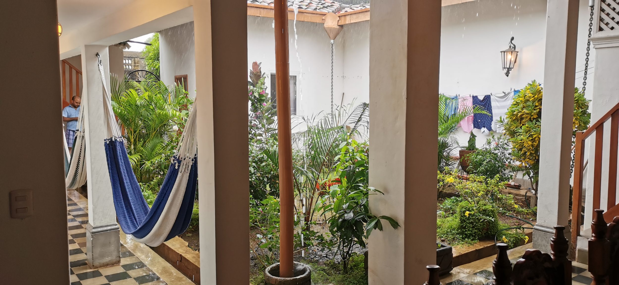 Como em toda a Nicarágua, há redes super confortáveis. E as casas antigas deste tipo têm jardins, há sempre vento. Isto é muito importante, especialmente para um país onde está sempre quente.