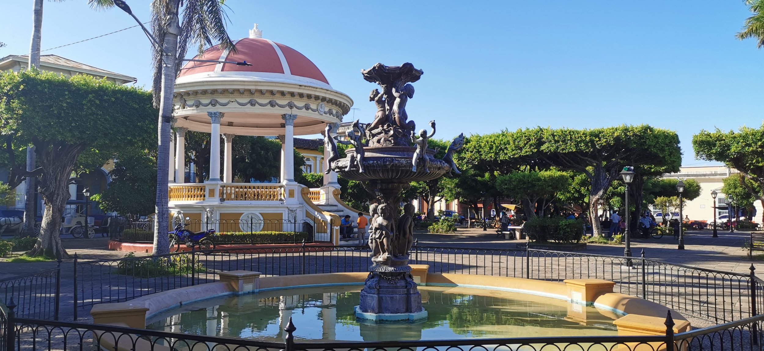 O microônibus de Manágua nos deixa bem em frente a esta bela praça central. Como todas as cidades coloniais da Nicarágua, a praça central é composta por uma bela igreja (ou catedral) e um parque. Pode ou não haver restaurantes por perto. Os locais encontram-se aqui – especialmente aos fins-de-semana, porque lá é mais fresco. Há alguns restaurantes que vendem vigor, bebidas, vendedores de cartões SIM… é um dos lugares mais autênticos desta cidade turística.
