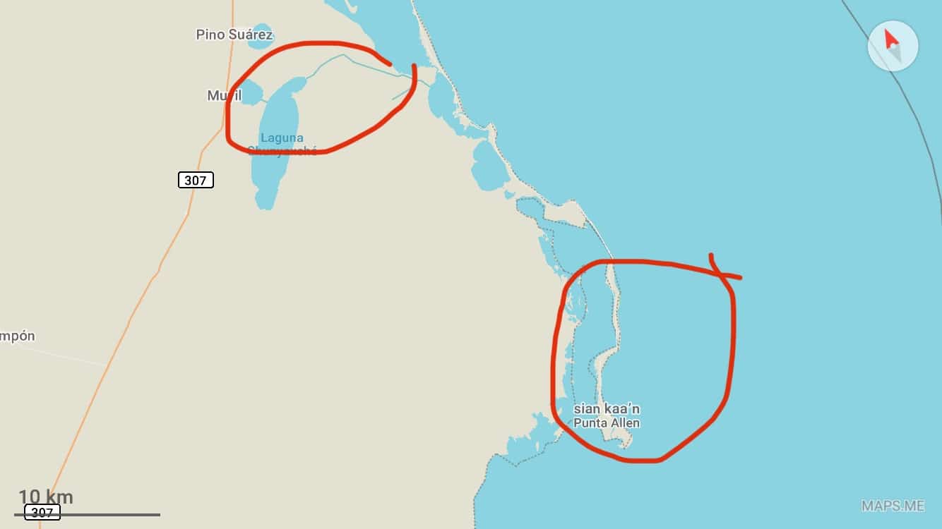 Vários turistas têm falado sobre os barcos que estão a poucos KM da entrada para a reserva (a entrada da reserva se chama Arco Maya, procure no Google Maps) – por isso não há necessidade de dirigir até Punta Allen de carro. A informação é um pouco contraditória: alguns dos passeios são alguns KM da entrada, a qualquer momento – outros falam sobre os barcos de pesca que deixam os turistas após a visita do dia e voltam vazios para Punta Allen e podem levá-lo até lá a baixo custo. Infelizmente, não fui capaz de verificar esta informação no local.