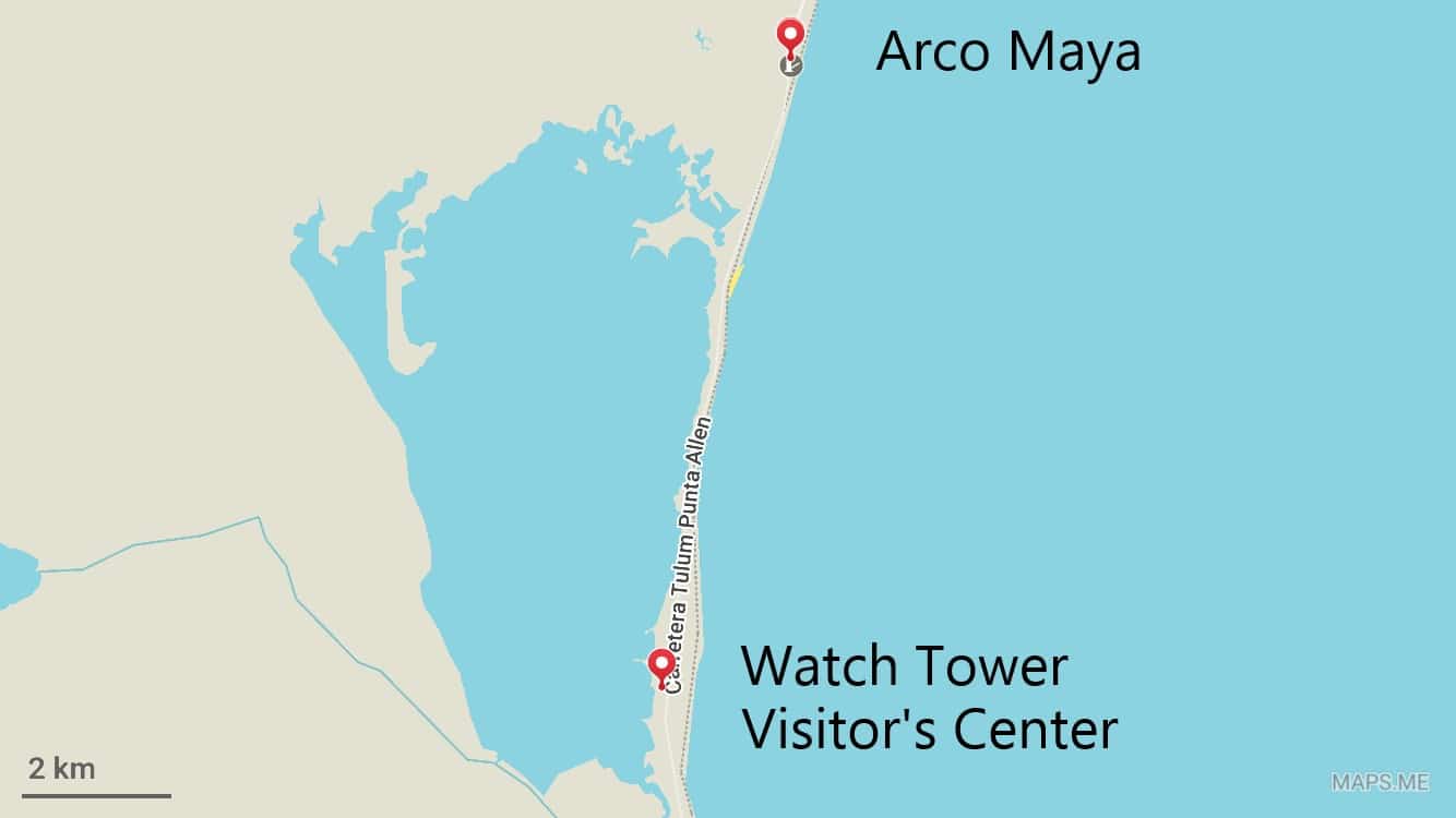Em qualquer caso, existem 3 fontes diferentes que falam sobre os barcos presentes na Torre de Vigia – Centro de Visitantes para 700MXN (você pode encontrá-lo em Maps.me, digite Watch Tower Visitor’s Center Sian Ka’an ou procure no mapa de Maps.me), a 8,8 km do Arco Maya (a entrada para a reserva).