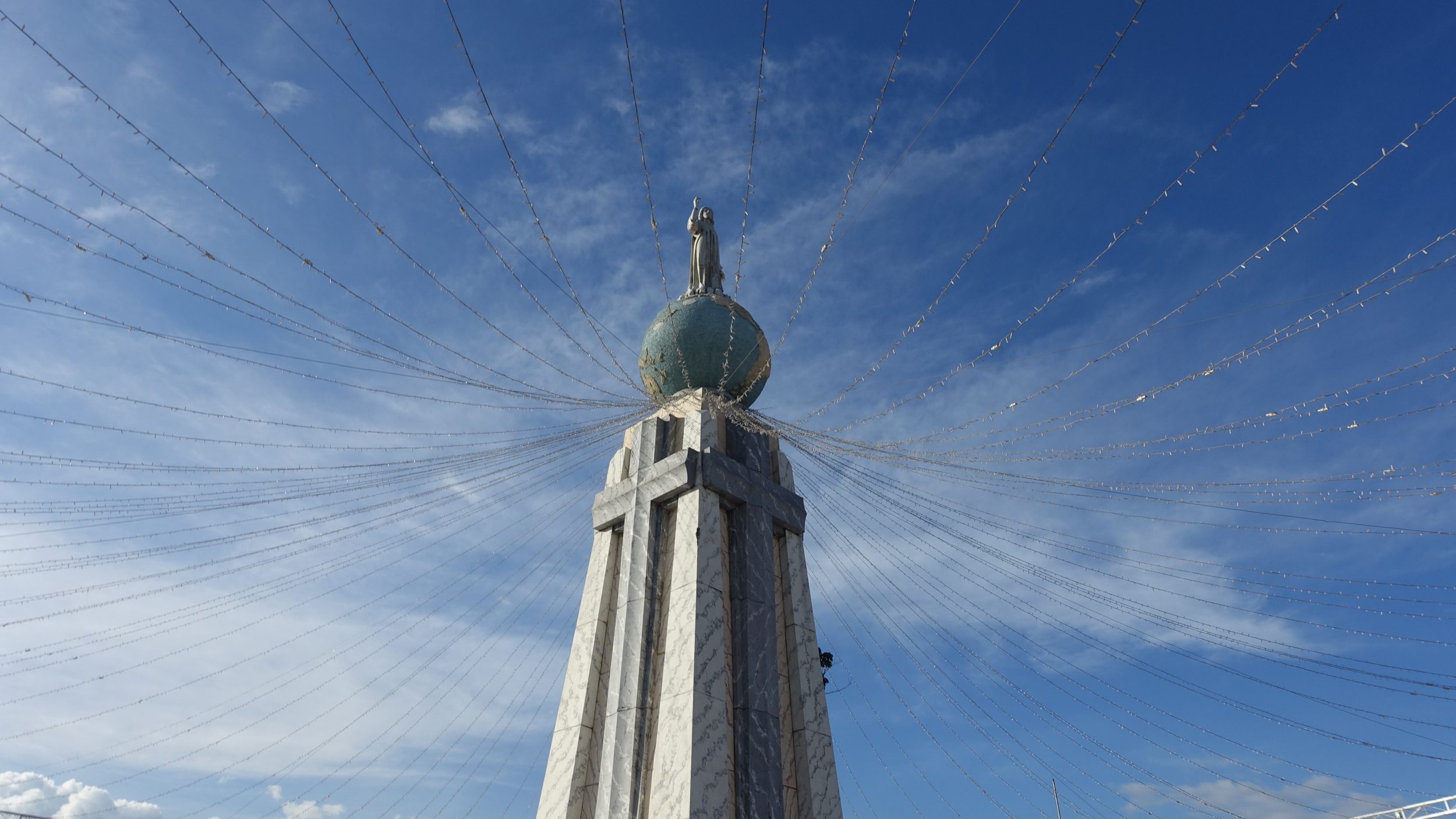 Depois de várias informações retiradas dos locais, eles nos mostram uma parada de ônibus movimentada a alguns quarteirões de distância. Não é realmente uma parada de ônibus, mas uma calçada onde vários ônibus param(coordenadas do Google Maps). Foi-me dado o número do autocarro (102D) para apanhar, mas vi um mini-autocarro (44B, penso eu) com “Salvador del Mundo” marcado nele. Tenha cuidado para não confundir com a Plaza Mundo que fica do outro lado da cidade. O ônibus custa apenas 0,30$, e descobrimos pela primeira vez as pequenas moedas de dólar (que só são usadas aqui, você tem que vendê-las antes de sair do país). Aqui está o monumento em questão, afinal não tão impressionante – mas os nativos me falaram dele com tanto orgulho que eu mesmo tive que vê-lo.