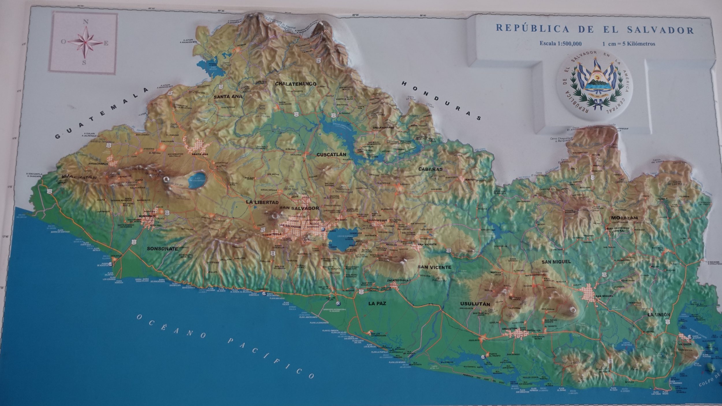 El Salvador é muito verde, e o país é muito pequeno. Aqui está uma foto tirada do avião perto de San Salvador:
