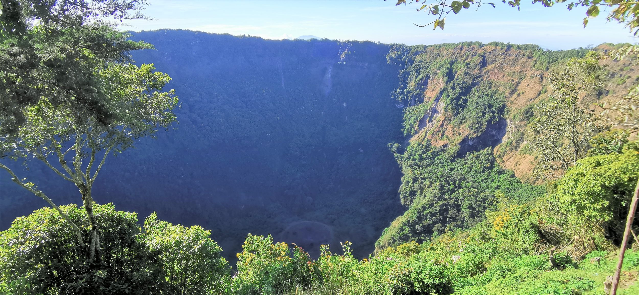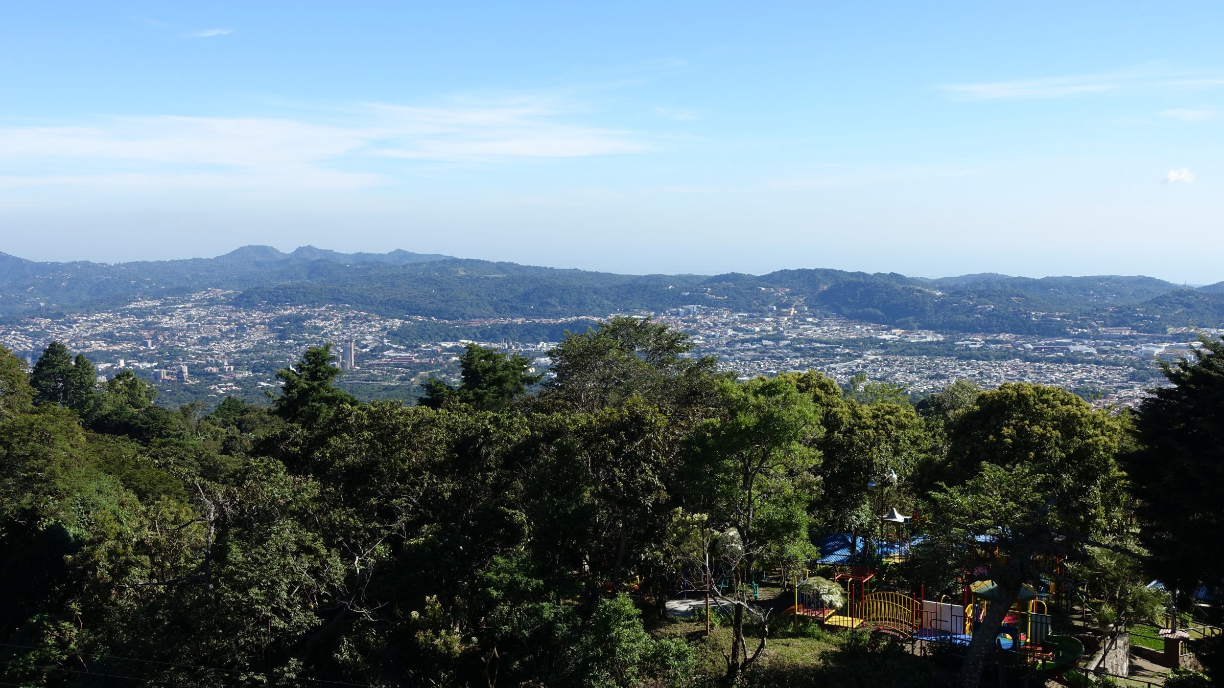 Bem, como ele não é um táxi, ele pegou o lugar errado e nos deixou 15 minutos antes, perto do restaurante La Terraza. O ponto de vista e a vista de San Salvador é de tirar o fôlego, mas não é o que estamos procurando. Encontramos nosso motorista no estacionamento (1$ o estacionamento) e lhe pedimos que nos deixe no El Boqueron Park.