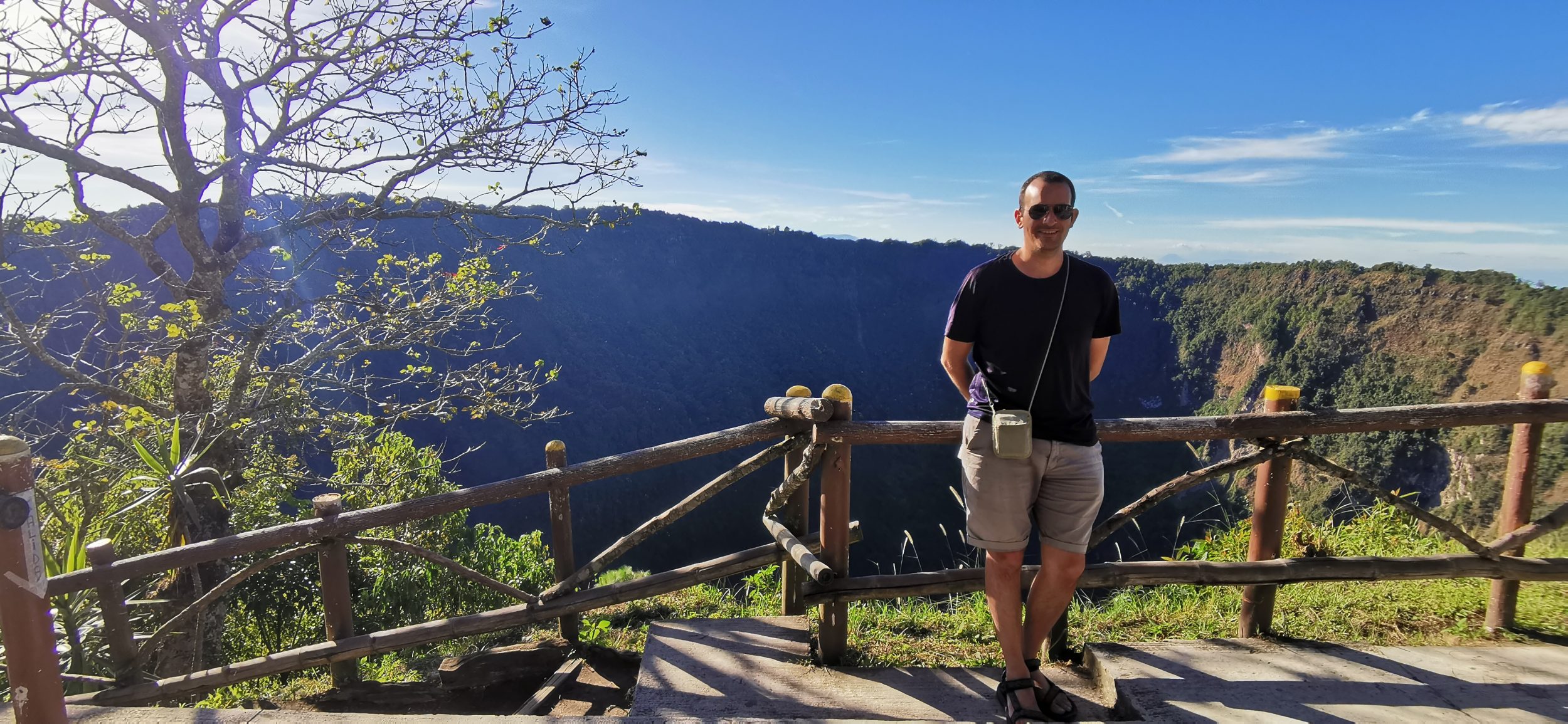 Ele não geme de todo e leva-nos lá sem demora. Temos sorte de conseguir o último lugar no estacionamento oficial (1$ contra 2,5$ para estacionamentos não-oficiais). Pagamos 2$ a entrada/pessoa (+ 1$ para o motorista quando ele nem sequer nos visita) e seguimos um pequeno caminho que nos leva à cratera.