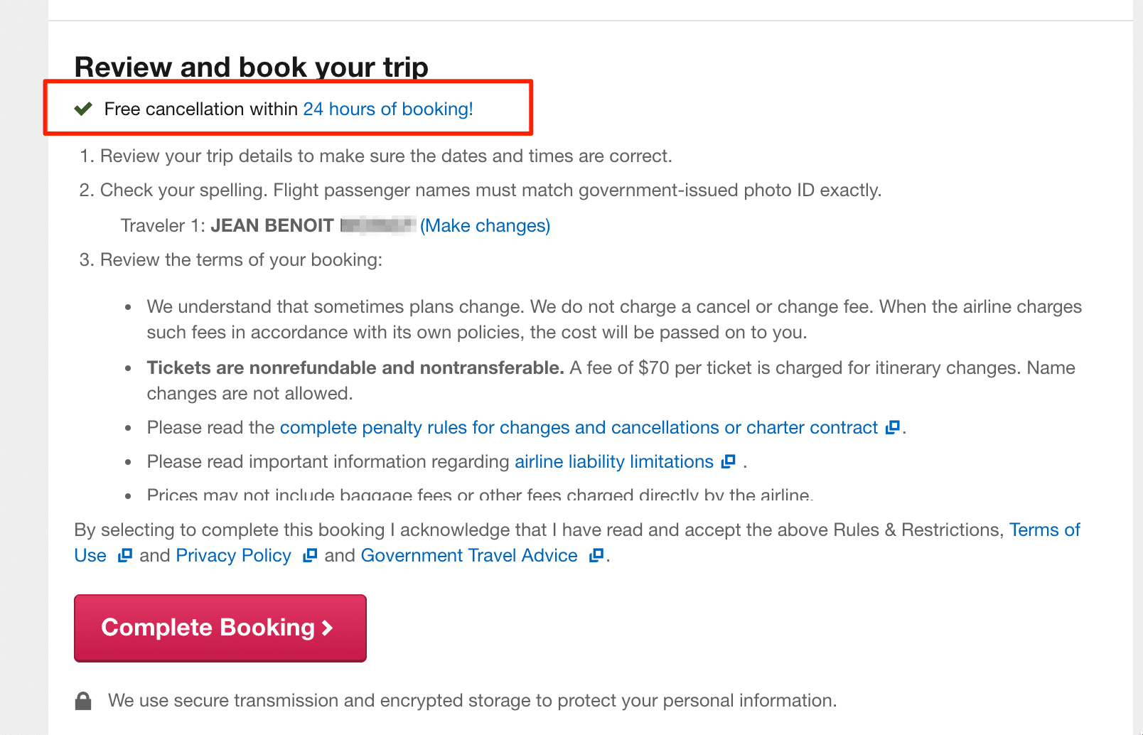 - Após 24 horas, o bilhete de avião não pode ser cancelado, não será possível mudar o nome do passageiro e será cobrada uma alteração do itinerário de 70 dólares. Por isso não te esqueças de cancelar a tempo.