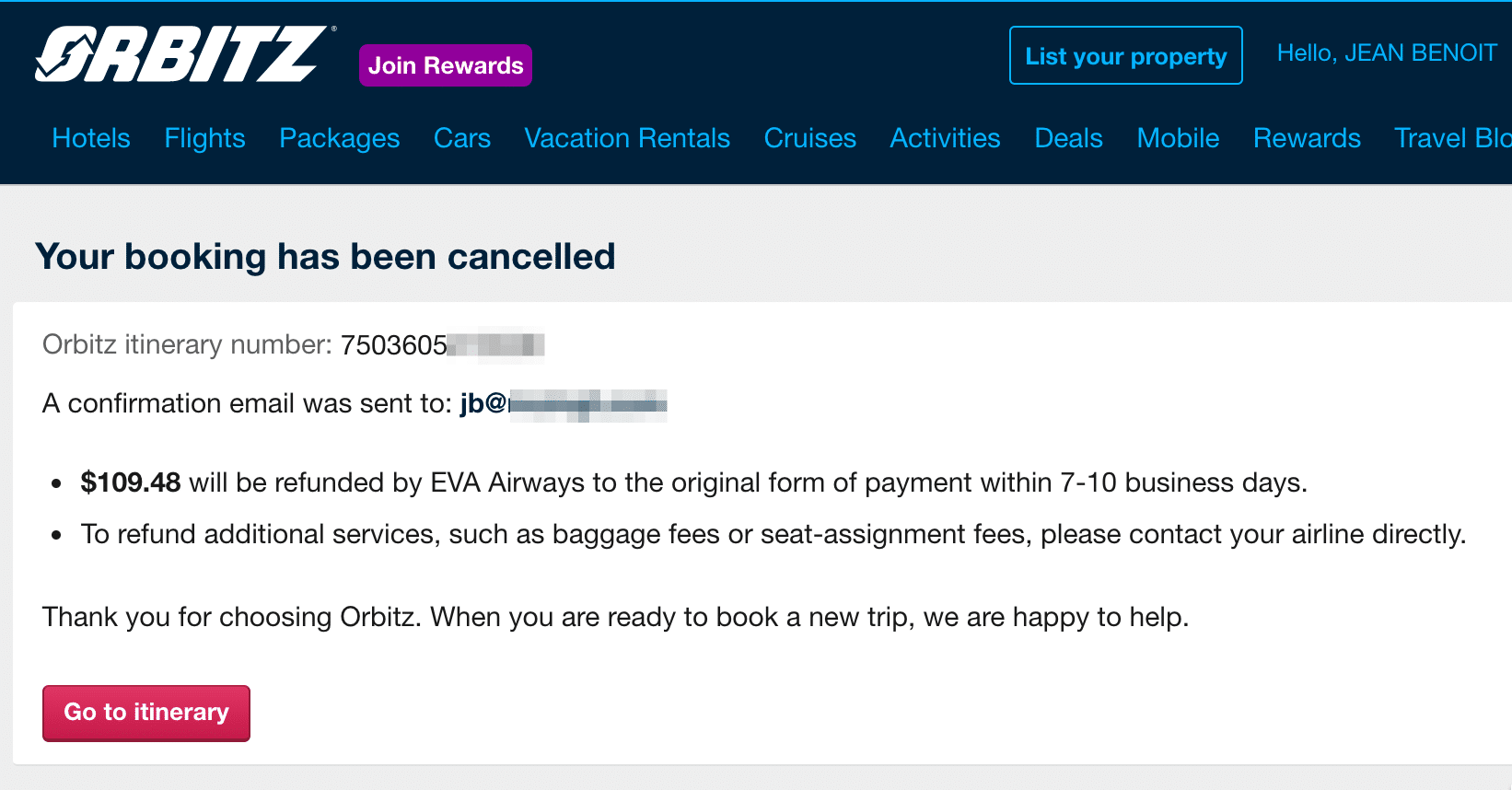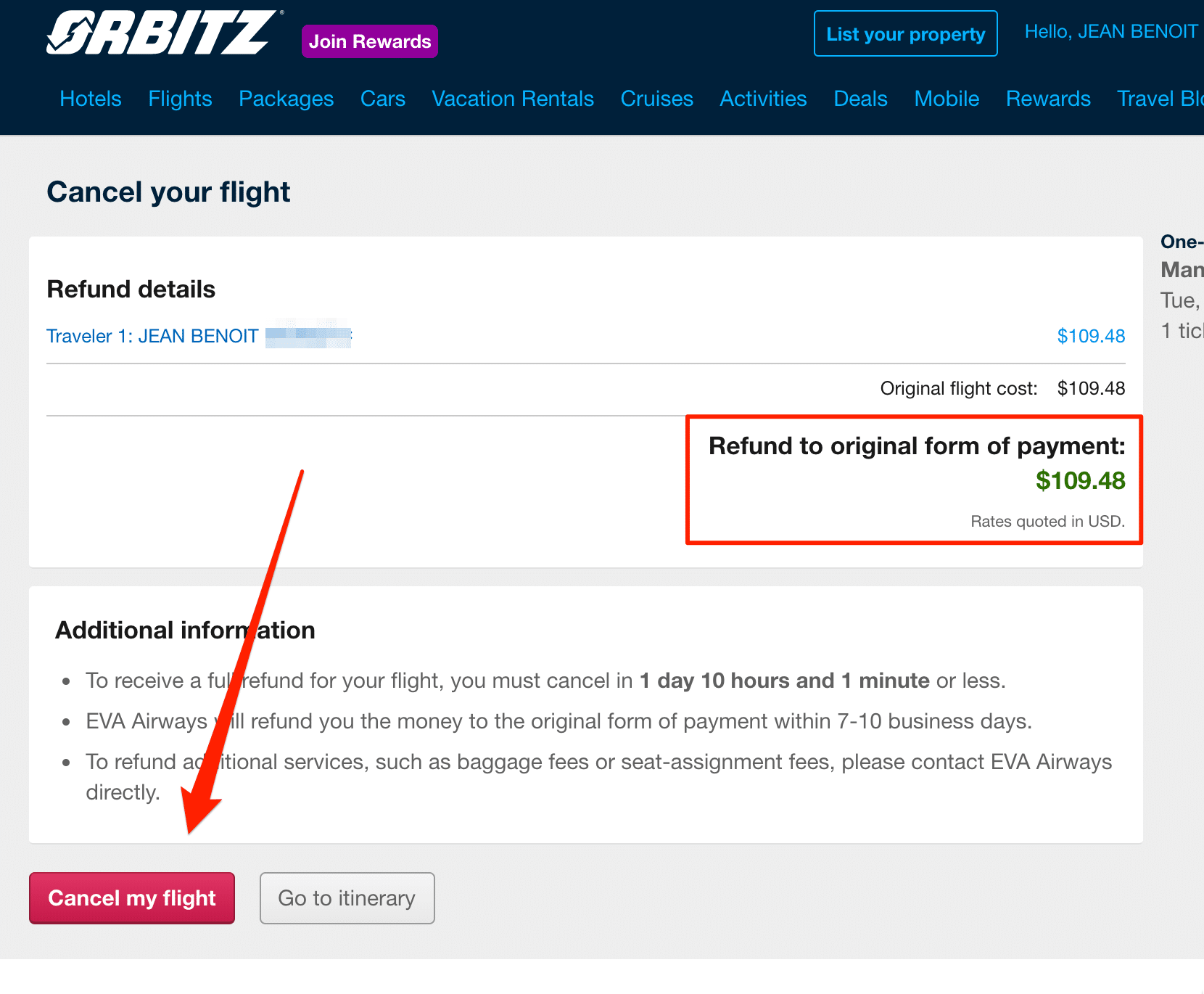 Depois de clicar em “Cancelar o meu voo”, receberá uma confirmação indicando que será reembolsado no prazo de 7 a 10 dias.