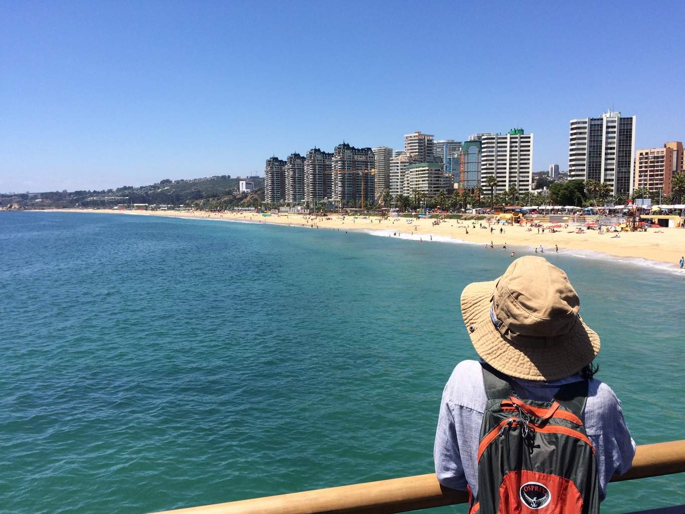 Você pode ver Valparaiso (as colinas superpovoadas à esquerda), e os guarda-sóis Sheraton (modo JALOUSIE ligado). Foi aqui que avistamos um selo