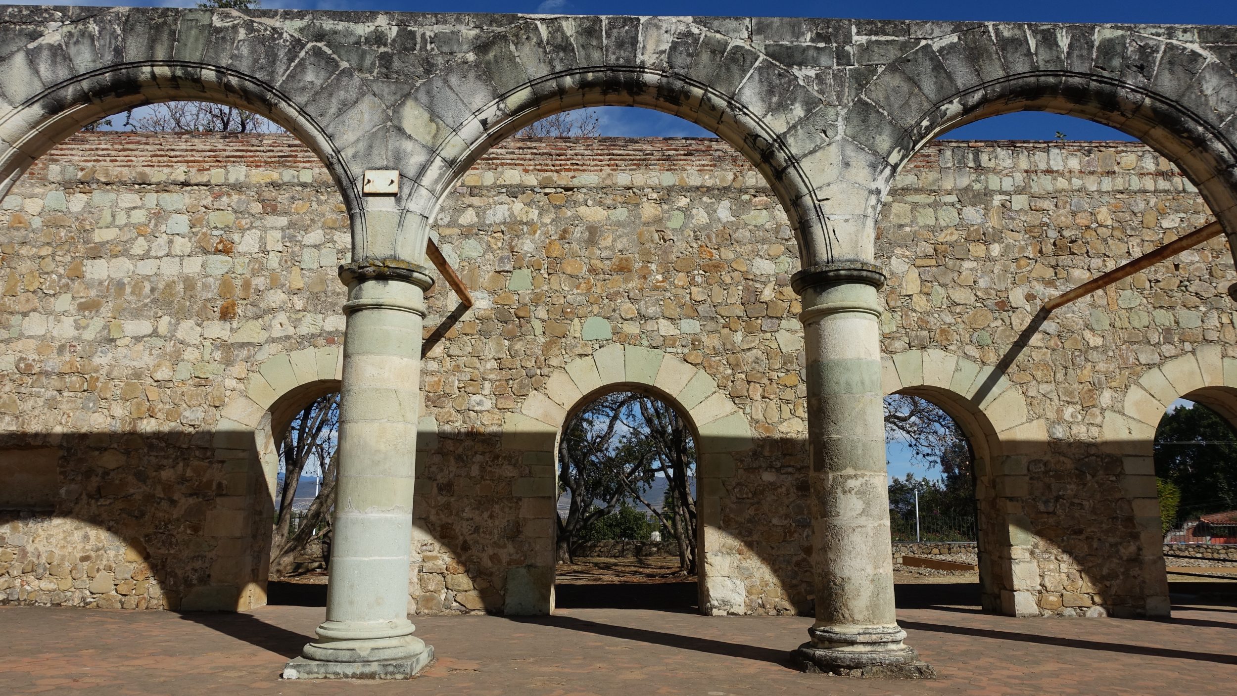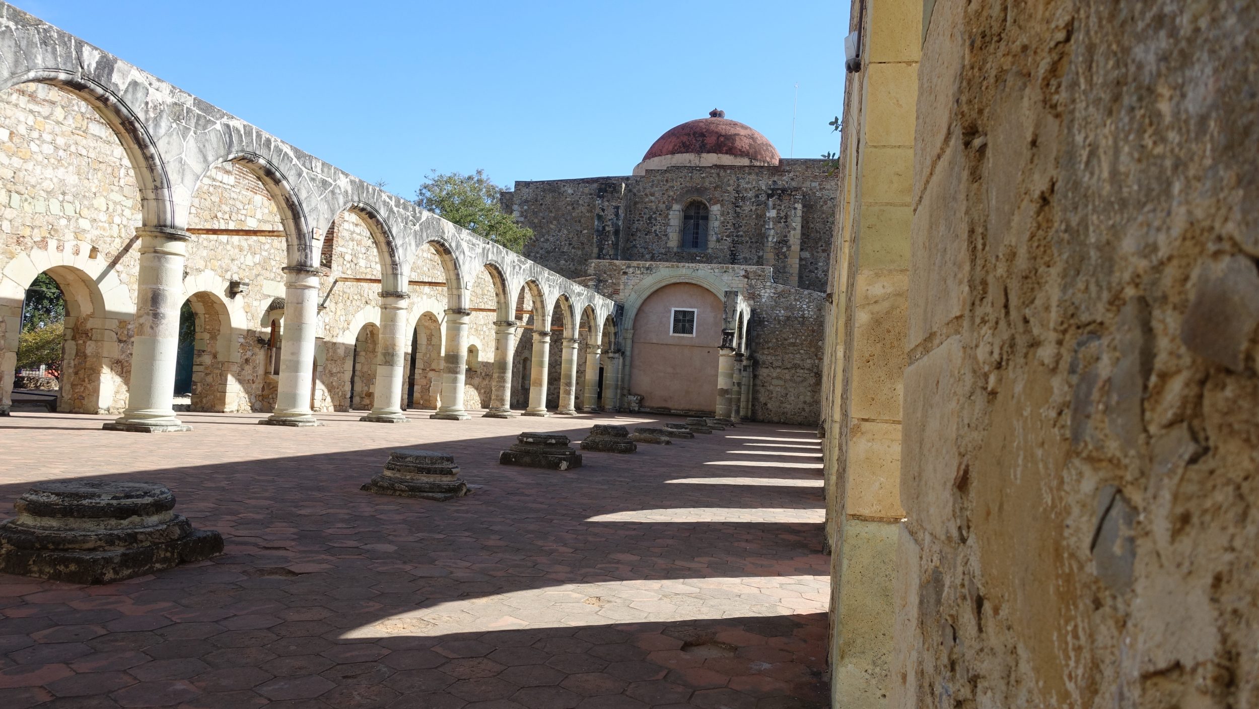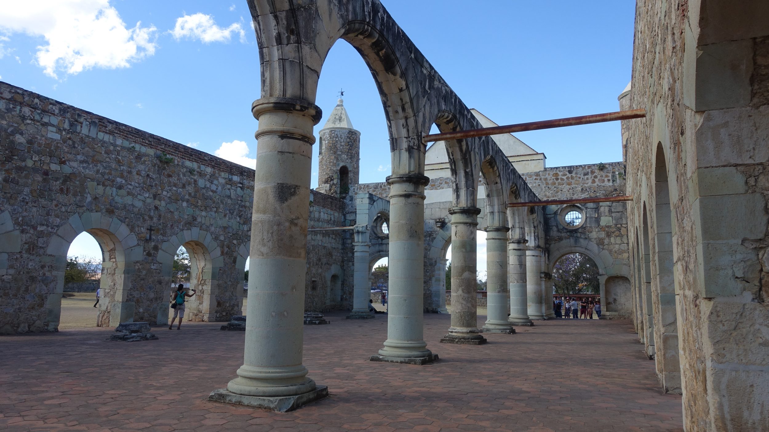 Tudo está aberto, há 21 portas de entrada e o guia nos explica que quando os espanhóis chegaram com sua religião, queriam pregar sua fé, mas os nativos, nunca tendo visto um cofre em suas vidas, tinham muito medo de entrar. Então eles fizeram uma estrutura aberta – para não terem mais medo – enquanto mantinham os cofres e as colunas.