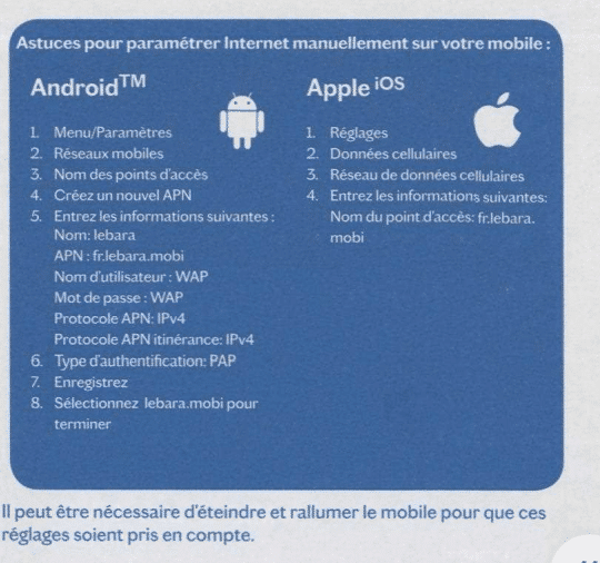 Se isto não for essencial, aconselho-o a instalar o aplicativo Lebara, que é muito bem feito e permitirá que você :
