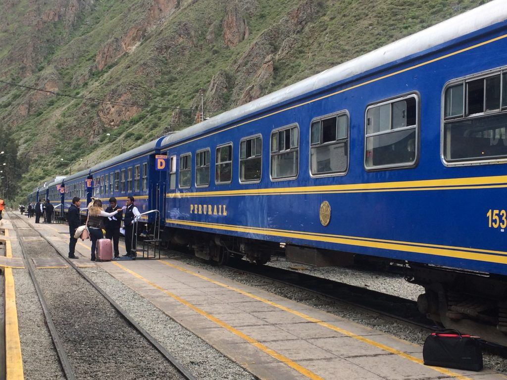 Este grande comboio azul do PeruRail é apenas um comboio local, não é o comboio para Machu Picchu.