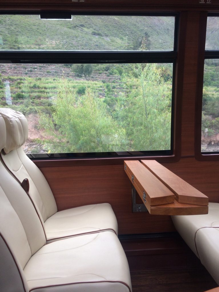 Veremos os comboios do PeruRail a passar na outra direcção, mesmo, eles só têm entre 2 e 3 vagões 🙂 Do pouco que vi, nosso trem IncaRail não tem muito a invejar ao PeruRail, apesar do preço mais barato. A única censura que o JB pode fazer a eles é a falta de espaço para as pernas e o assento desconfortável para os adultos. Mas, para uma viagem de 1h30, não vamos chorar.