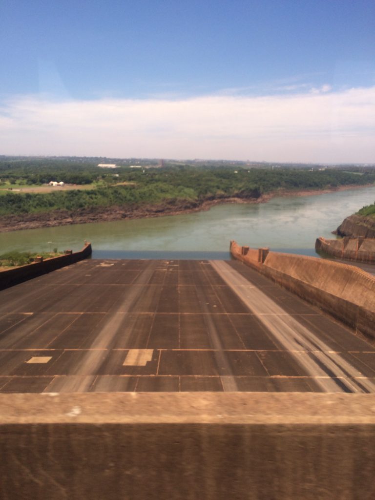 Tudo isto dura 45 minutos, saímos do autocarro apenas uma vez para tirar fotografias, o resto do tempo o guia explica a estrutura da barragem à medida que avançamos. O engraçado é que a barragem está localizada bem entre Paraguai e Brasil, então durante a visita, o ônibus passou pelo lado brasileiro atravessando a barragem e depois voltou para o Paraguai. Antes, havia um longo filme de 1h30 para apresentar a construção da barragem, mas eles entenderam que ninguém estava interessado, então a visita agora dura apenas 45 minutos de ônibus, sem a curta-metragem no final.