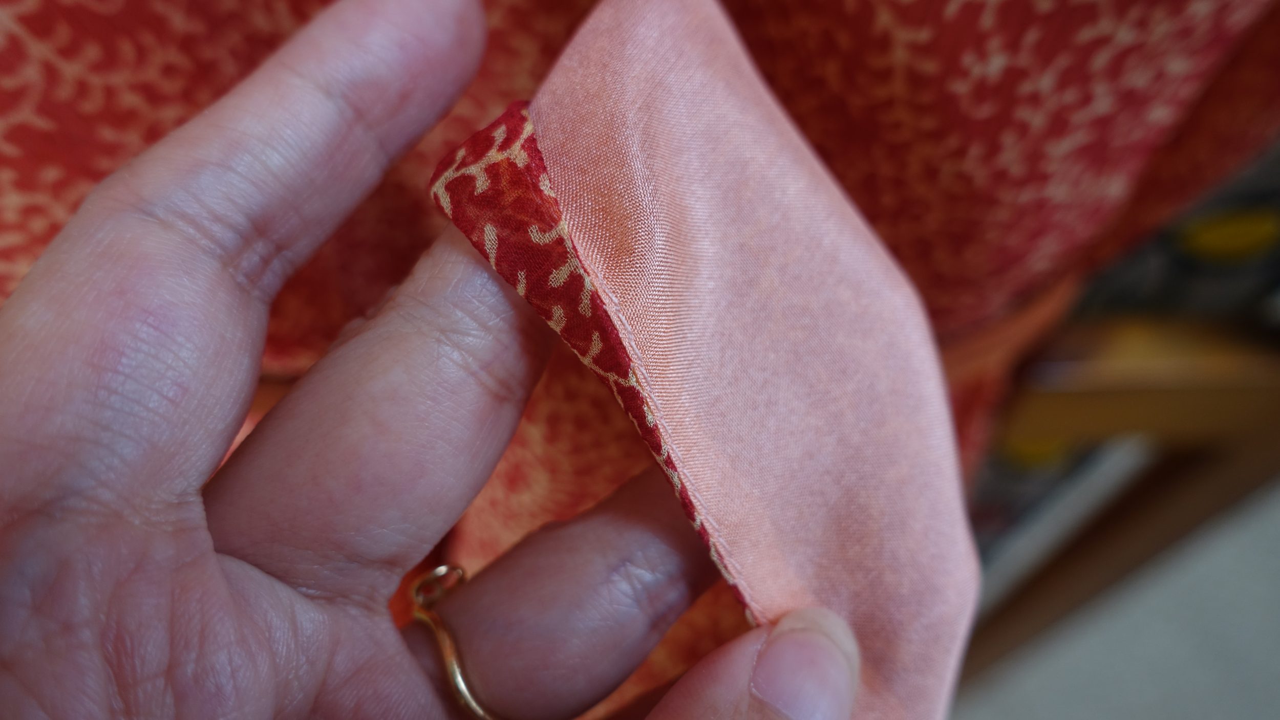 Ao costurar, você tem que ter muito cuidado com a tensão da linha, tendo cuidado com o desgaste que pode danificar todo o vestido em poucos segundos. As costureiras capazes de trabalhar com seda são incrivelmente técnicas. É um dos materiais mais difíceis de se trabalhar. No Vietname pagamos a estas costureiras pelo menos o dobro do que a uma costureira normal.