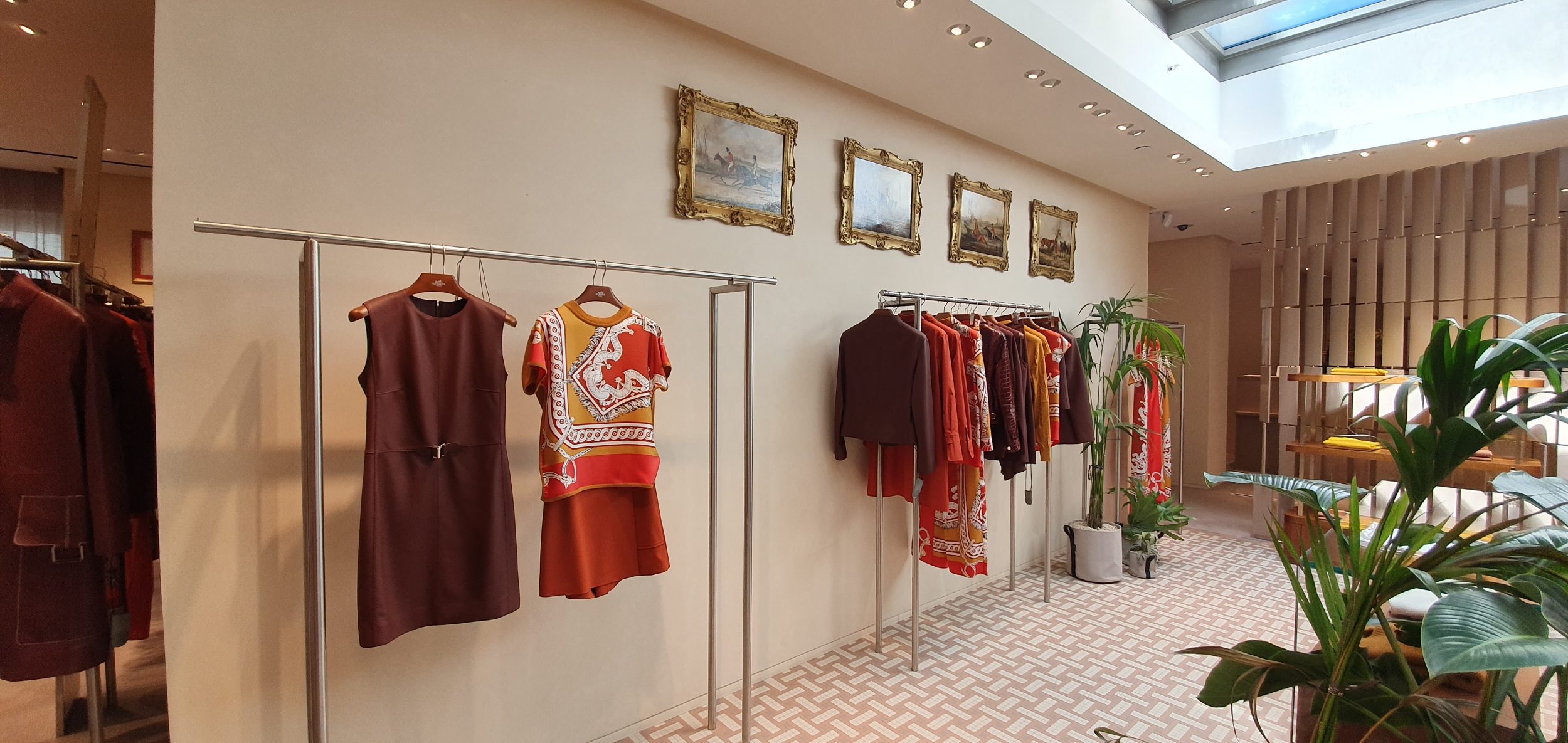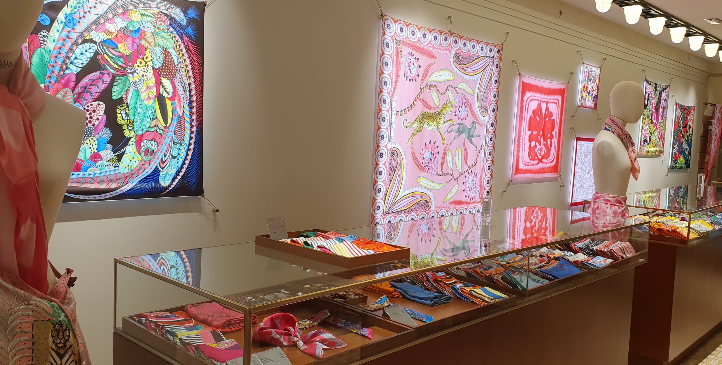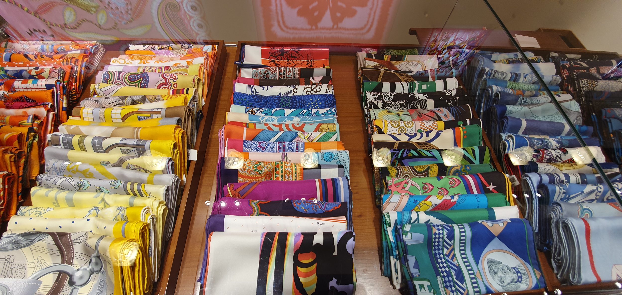 É aí que começa o verdadeiro trabalho. Há um vendedor por metro quadrado, por isso só tens de olhar para alguém para ser atendido. As praças fazem parte dos emblemas da marca e beneficiam de uma localização central (e histórica), mesmo ao lado da entrada. Antes, só havia 4 expositores para a seda, mas já fomos a 6 expositores, senão é um paraíso de lenço.