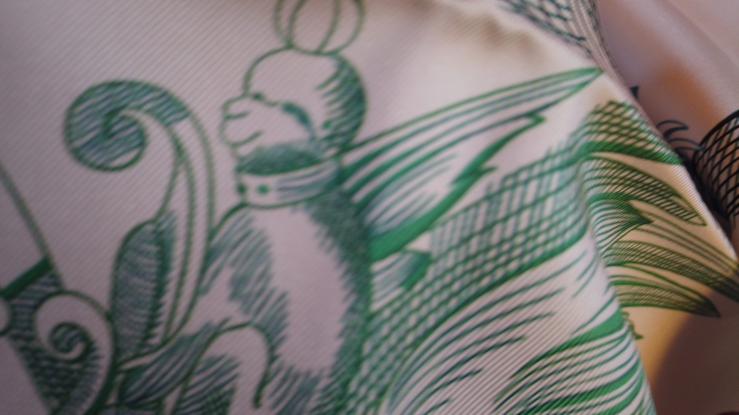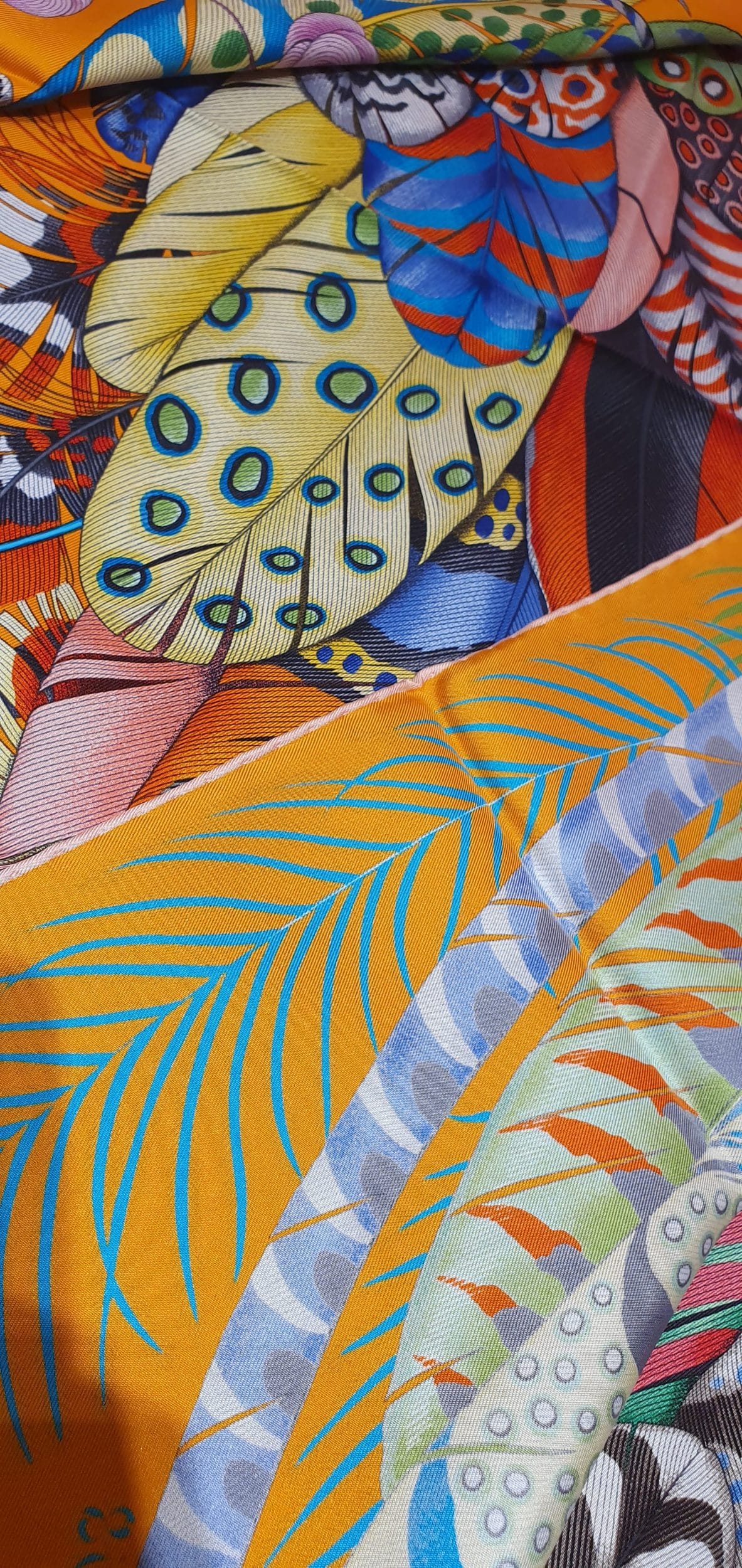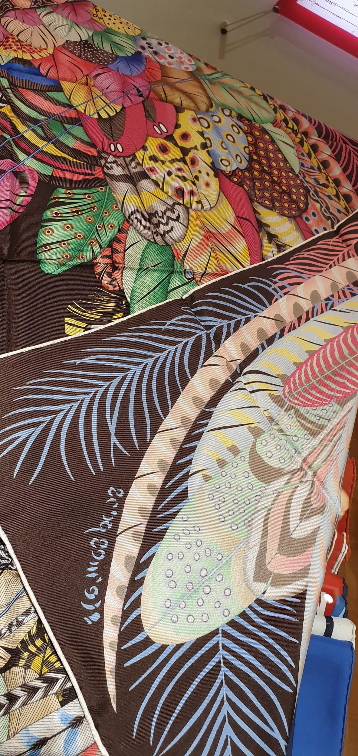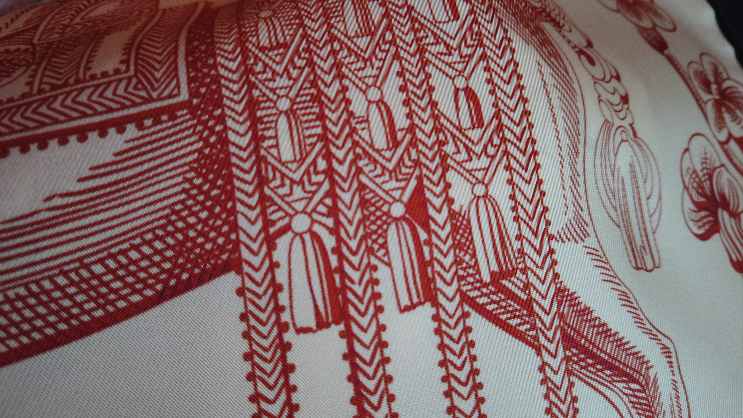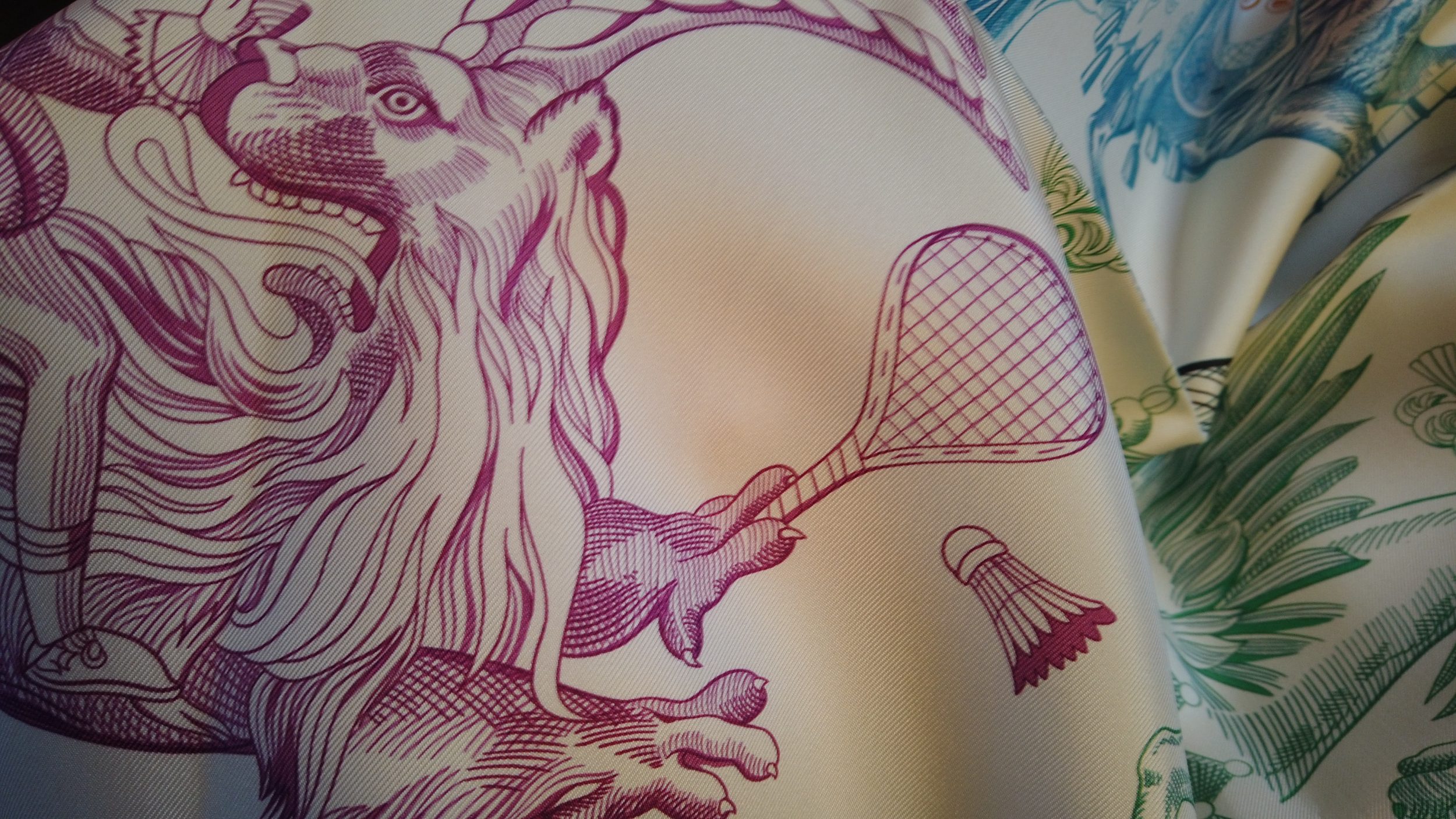 O relatório não só foi emocionante, como também revelou que Hermès tinha, pela primeira vez, produzido quadrados de dupla face usando uma técnica de impressão inovadora. Eles são, de momento, os únicos que sabem como fazê-los. Três modelos de mulheres + um modelo de homens estão em oferta, incluindo um do Cocas Oliver.