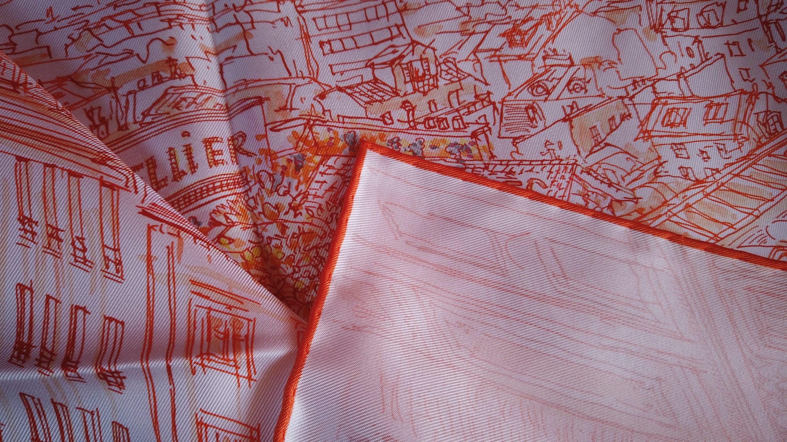 Eu acho que é necessário vir e vê-los na vida real, porque eles são realmente bonitos, e completamente diferentes das praças clássicas. Quando havia vazamentos sobre estes dois lados, as pessoas tinham medo de ter 2 camadas muito finas de seda costuradas juntas, ou de ter que pagar o dobro de um quadrado padrão. Mas a realidade é bem diferente: cada quadrado de duas faces custa 490 euros contra 375 euros para um quadrado padrão. E o quadrado de dupla face tem a mesma espessura que um quadrado padrão. É que a tinta “parou” no meio em vez de correr para o lado oposto / de molho.