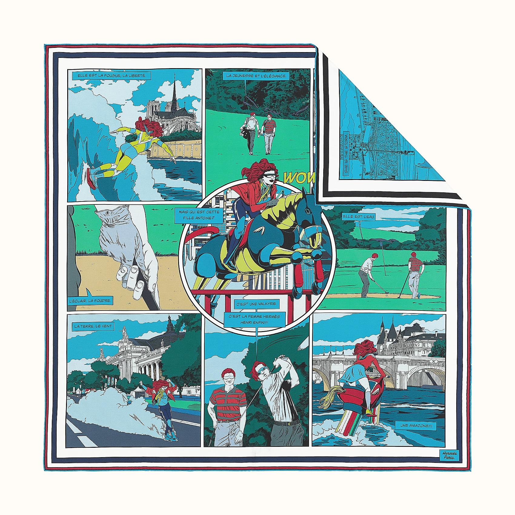 Um novo capítulo em seda Hermès: o “Carré au carré”, o “Carré au carré”! Uma grande inovação: duas expressões do mesmo desenho em cada lado da praça.