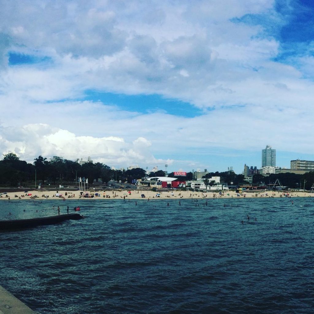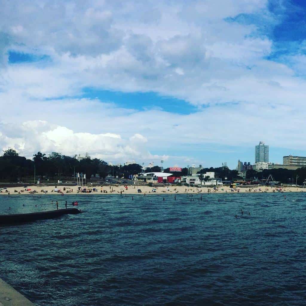 A água não é turquesa/transparente… mas a areia branca convida à ociosidade. São apenas 30°C mas o sol já nos está a cansar. Preferimos nadar mais tarde, em Punta del Este, para onde iremos amanhã