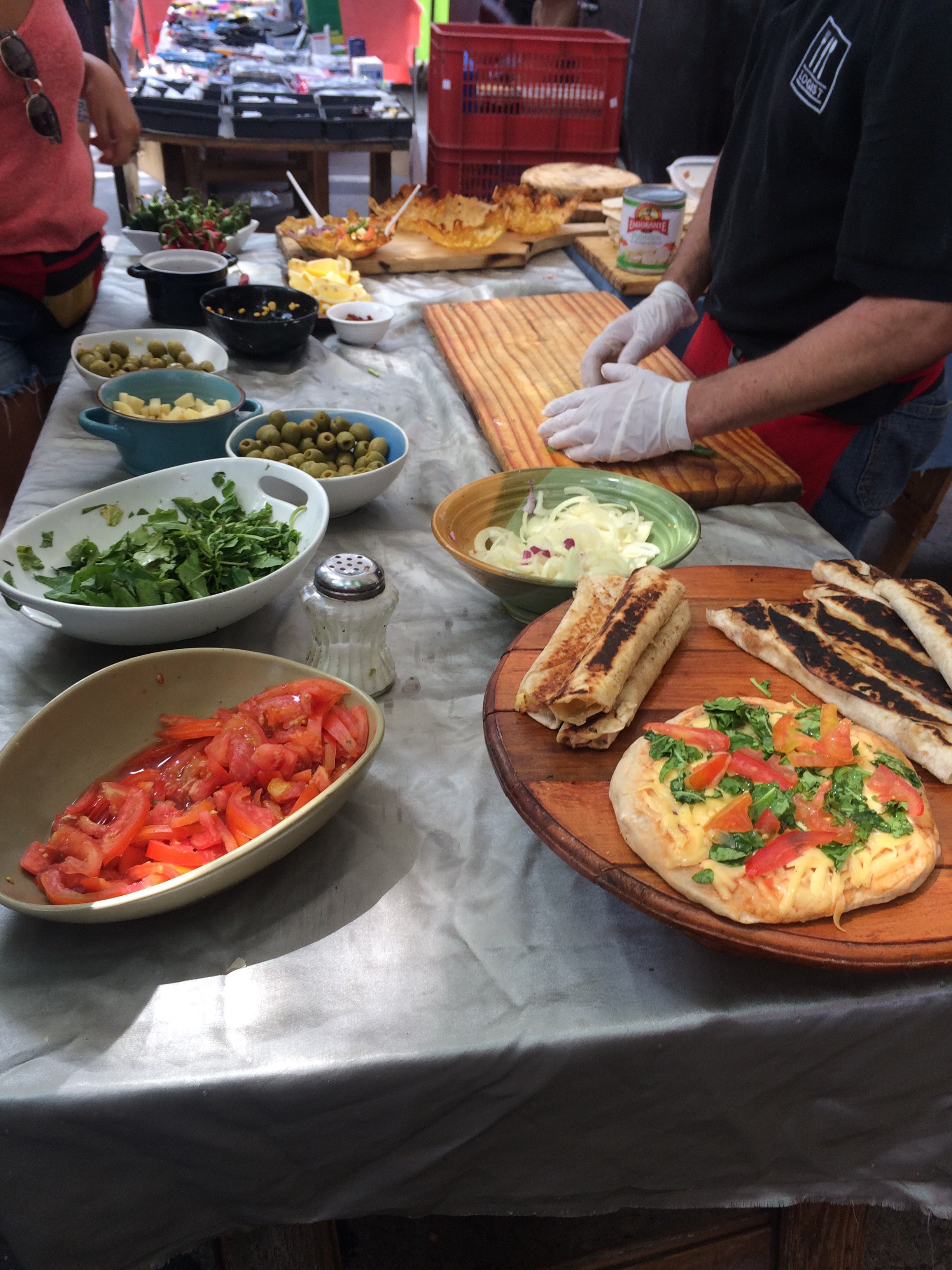 JB tem um fraquinho por mini-pizzas personalizáveis a 90 pesos. Existem apenas 5 ingredientes, mas o vendedor é muito bem sucedido. Achamos que quando ficamos sem dinheiro, podemos ganhar dinheiro com um caminhão de alimentos deste tipo, vendendo pizzas/tacos personalizados e possivelmente suco de laranja fresco (já temos uma máquina profissional para fazer suco em 10 segundos)