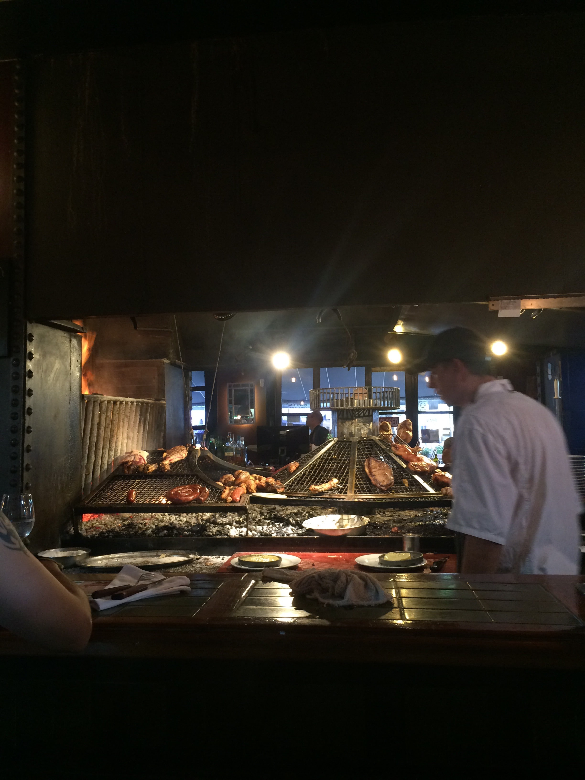 Ainda bem que já almoçámos na feira da ladra, senão teria sido difícil resistir à chamada dos churrascos de 2 metros de largura aqui. Todos os restaurantes vendem boa carne uruguaia (que não tem nada a invejar ao argentino) por 15 euros/pessoa (porção monstruosa). A propósito, todos nos aconselham a vir almoçar aqui e apreciar o vinho branco uruguaio também