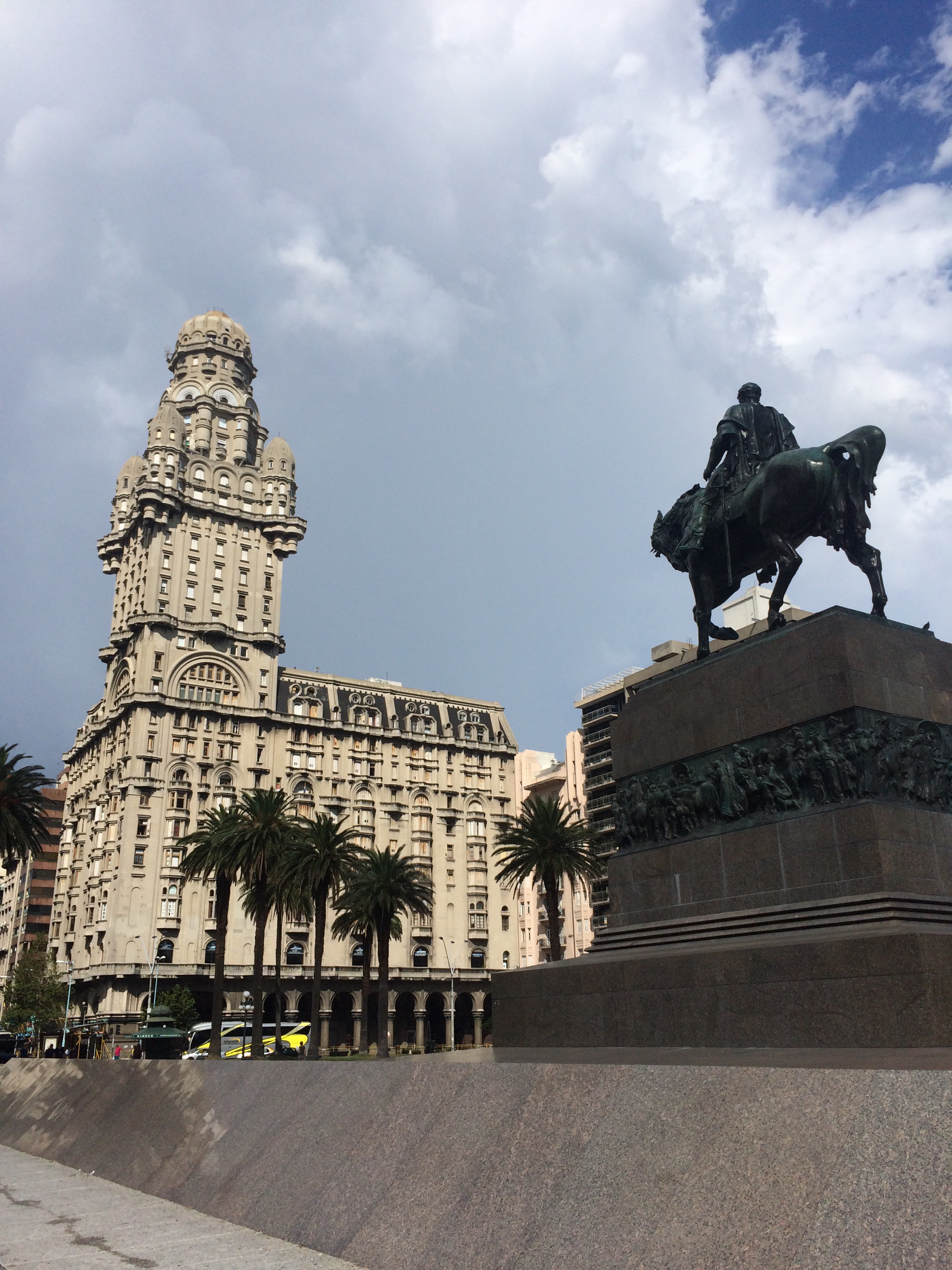 À tarde, as pessoas vêm à Plaza Matriz com suas cadeiras dobráveis, um colchão na mão. Há uma pequena fonte no meio, uma sorveteria (também uma Mac Do), uma bela igreja… palmeiras no meio da rua de pedestres. Eu gosto muito! A arquitetura não é necessariamente o ponto forte de Montevidéu, mas é engraçado encontrar estilos de arquitetura completamente diferentes. Dá um encanto à cidade