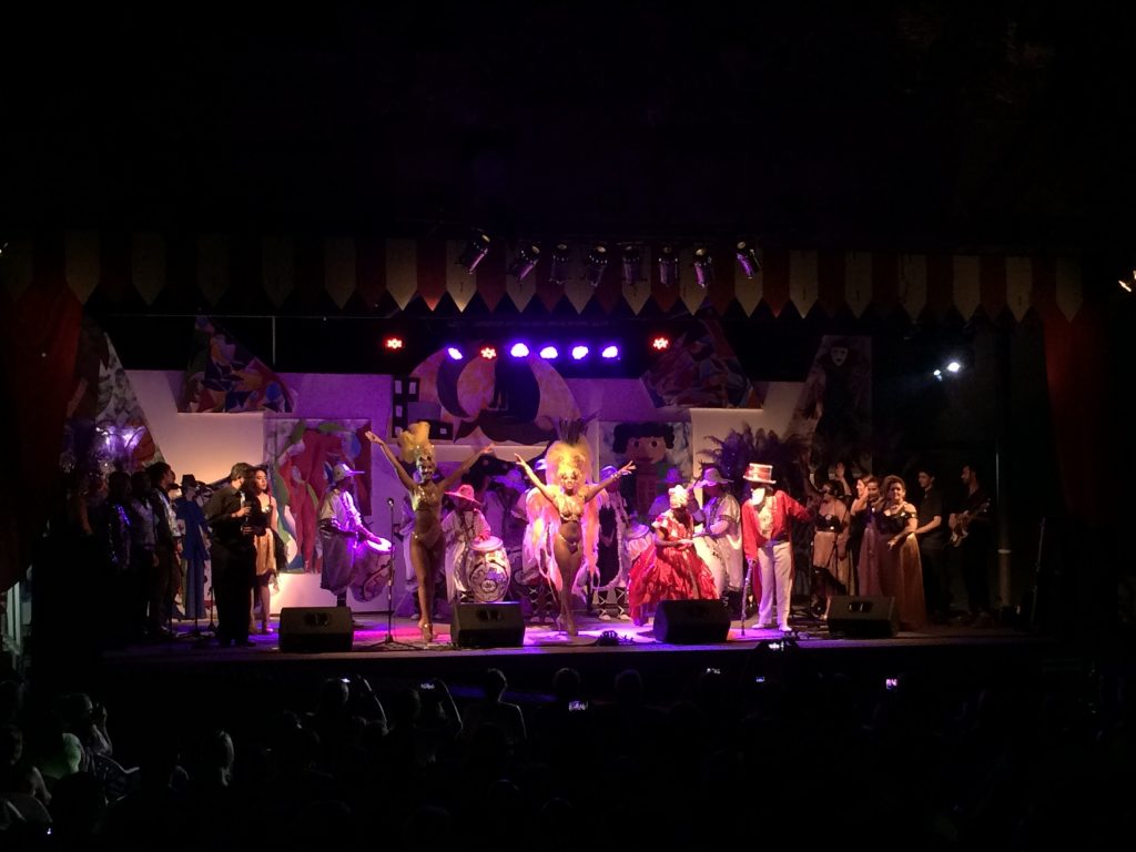 Os próximos dois grupos serão completamente diferentes. A primeira parece uma comédia musical, retratando a vida de uma personalidade que parece ser muito apreciada pelos uruguaios. A letra das canções e o texto (falado) são muito importantes, mas não conseguimos entender o conteúdo, por isso o interesse é limitado. O público parece gostar de qualquer maneira