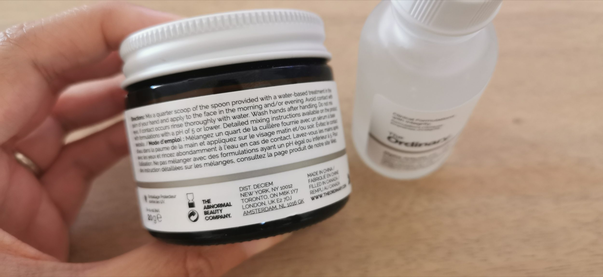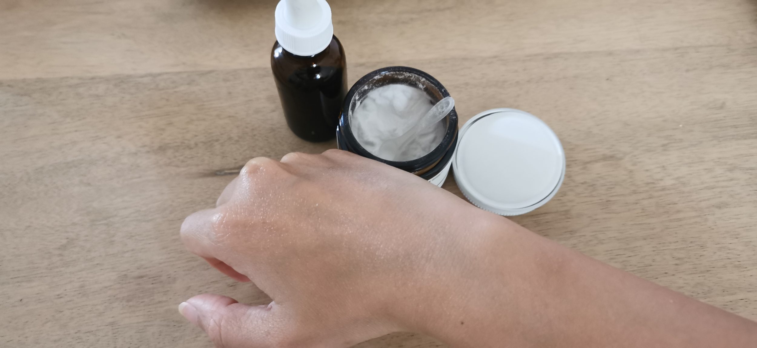 Quando as duas são misturadas, a niacinamida é completamente dissolvida no soro, não há vestígios de pó. E aqui está a minha mão bem hidratada:D