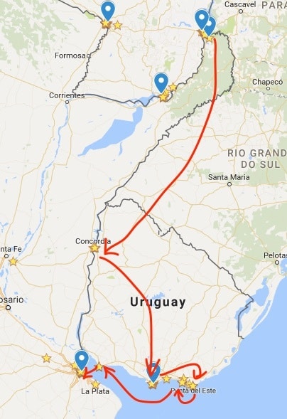 Para nós, o Uruguai é a melhor escala possível entre Iguazú e Buenos Aires. Entre estas duas cidades, não há muito o que ver na Argentina. E passar pelo Uruguai nos poupa um pouco de dinheiro no transporte porque os ônibus no Uruguai são muito mais baratos do que na Argentina
