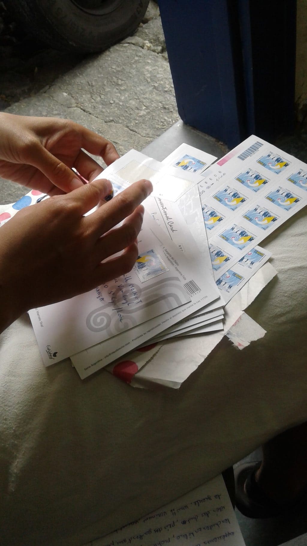 Aproveitamos o mau tempo para escrever cerca de trinta cartões postais recolhidos no Peru, Bolívia, Uruguai e Argentina. Finalmente, podemos enviá-los, com apenas 1 mês e meio de atraso (oops)