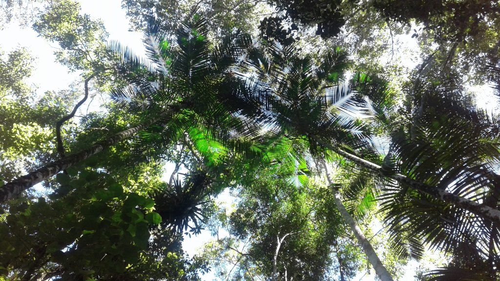 Na floresta, você pode encontrar um pouco de tudo: palmeiras, mangueiras, maracujás (os maracujás aqui são duas vezes maiores do que o que vemos na Europa).