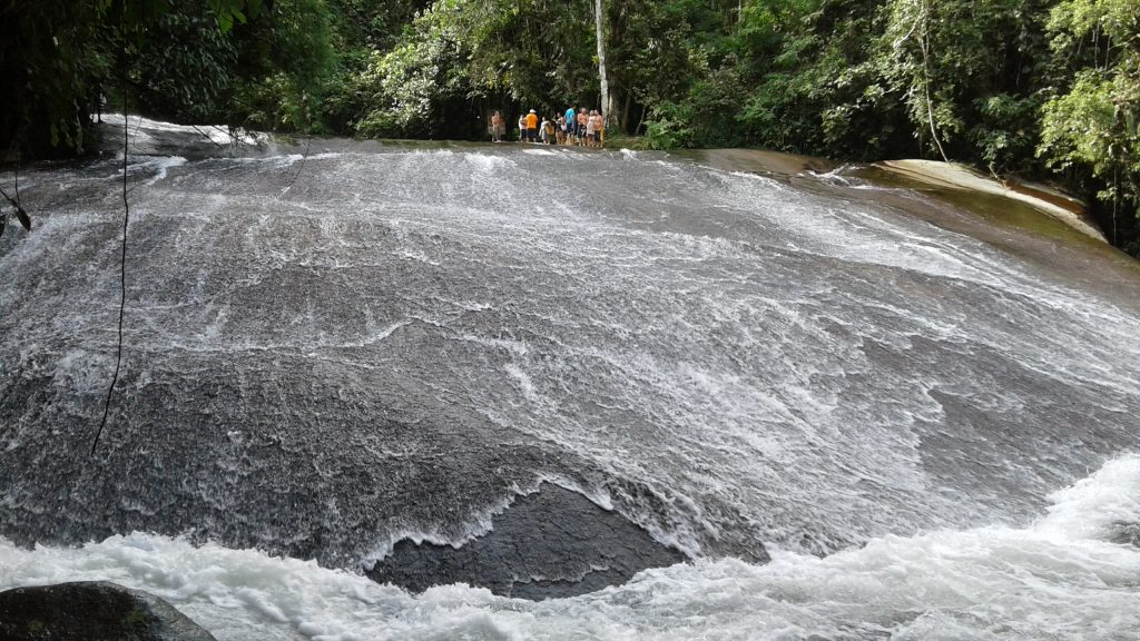 No fundo do rio está a queda de água Tobogan. Você pode se deixar deslizar sobre as nádegas (como em um Tobogan), mas os mais experientes vão para lá enquanto surfa. Todos os anos, há uma competição de surf nesta mesma cachoeira. Não tente! Podes facilmente partir uma perna ou um cotovelo