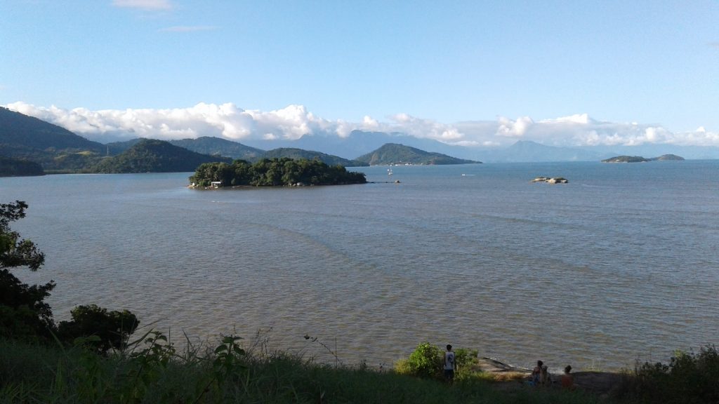 Depois vamos para um miradouro com vista para a baía de Paraty. É um lugar muito agradável onde podemos sentar em grandes rochas e desfrutar de um pouco de brisa enquanto admiramos a paisagem. Esta é a primeira vez que eu me sinto tão bem no Brasil. Eu podia ter ficado lá uma hora, mas está na hora de voltar