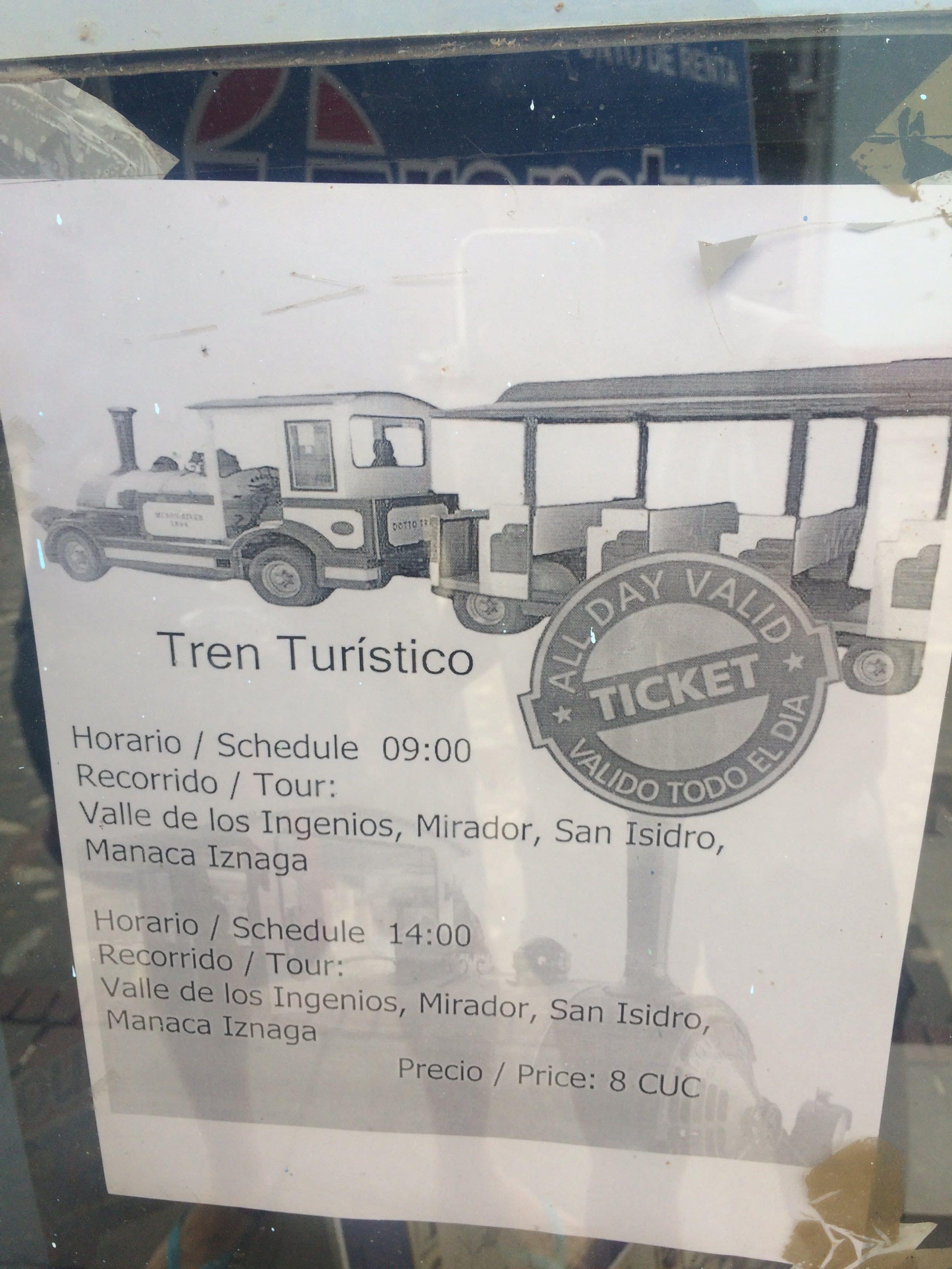 • Há também um trem turístico que sai todos os dias às 9:00 e 14:00 horas, indo para Valle de los Ingenios, Mirador, San Isidro e Manaca Iznaga. Partida em frente ao Havana Tour. Preço: 8CUC/pessoa
