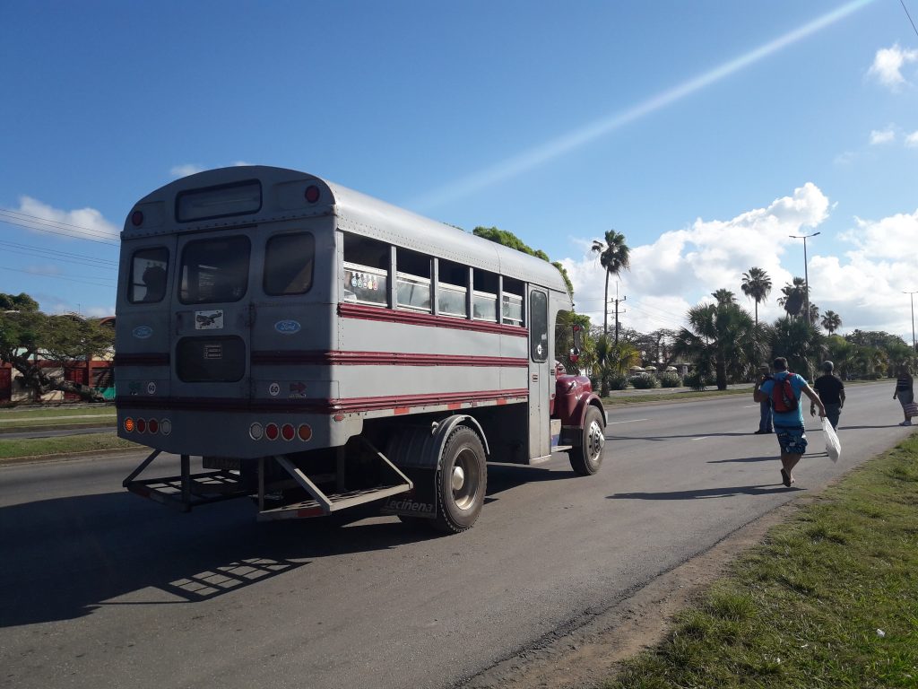 Há um autocarro que sai às 9 da manhã na estrada principal para a praia de Varadero. Apressamo-nos para estar na paragem do autocarro às 9:00 em ponto. Cerca de 30 pessoas estão à espera do autocarro. Nós nos preocupamos um pouco pensando que nunca seremos capazes de suportar a multidão como o metrô parisiense linha 13, sob o sol escaldante do Caribe. Notamos um camião renovado e algumas pessoas a entrar e a sair. Nós olhamos para dentro: há bancos e parece confortável. 10CUP (moneda nacional) por pessoa ou 0,37 euros.