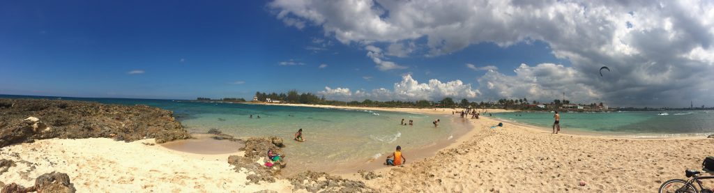 Nas indicações do nosso anfitrião da casa, encontramos a paragem oficial de camiões a 5 quarteirões de distância da casa. É uma viagem de 40mn por apenas 10CUP (moneda nacional) por pessoa, ou 0,37 euros. Somos deixados na rua 45, caminhamos ao longo da praia para encontrar o nosso bar favorito na rua 29 e passamos o dia inteiro nas espreguiçadeiras.
