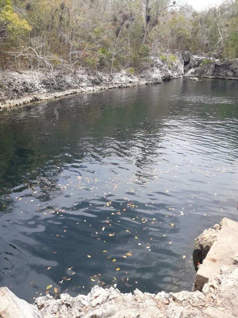 Saber antecipadamente que este “buraco”/cenote tem 70m de profundidade não me ajuda! Só de imaginar tal profundidade assusta-me particularmente. Eu fiz 3 minutos de snorkelling de cima, paralisado pelo meu medo, enquanto JB nada como um peixe na água. Ele não viu muitos peixes (a visibilidade é média devido à mistura de água salgada/fresco), mas as cores são muito agradáveis precisamente por causa deste tipo particular de água. A uma profundidade de 2m, há como que uma corrente de água quente